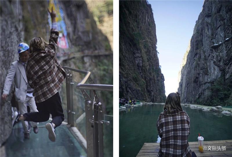 沿着石级而上至最高点是一段高170米、长80米的玻璃栈道,行走其中犹如“凌空漫步”,惊险刺激。栈道另一侧还有一个凸出栈道外7米的玻璃观景平台,可俯瞰关内全景。