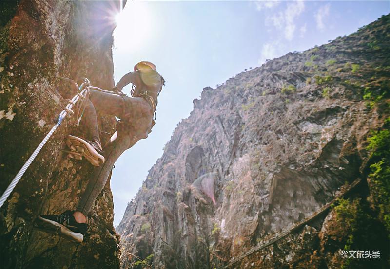从栈道下来,体验飞拉达攀岩,第一次攀登心里难免害怕打颤,没关系,石门关飞拉达的领队们会帮助你。从山脚一路攀岩直上,这是勇敢者的游戏,能感受到自己心跳在加速,这时千万要栓好安全绳,想要体验飞檐走壁,定要切记安全第一。