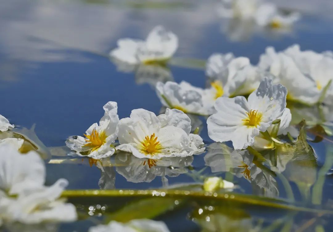 海菜花属植物是一种典型的沉水植物,花开于湖面,晨开夜沉,常与眼子菜属、丽藻属、黑藻、穗状狐尾藻等水生物种共生。
