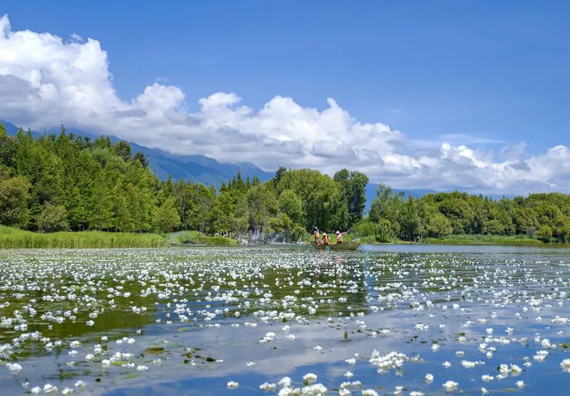 近年来,云南省大理白族自治州持续推进洱海水资源科学调度、水环境整治、水生态修复等工作,2020年洱海国考断面水质评价为优,环湖生态环境逐步改善,湖区沉水植被面积恢复到34平方公里,曾经几乎消失的海菜花再次绽放,形成一道独特的生态景观。