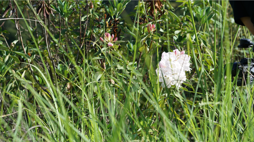 一步步走向山林深处,那路旁东一朵西一朵的大白花,瞬间变得成团成簇,洁白无暇,开得热烈、绚丽,花瓣向四周散开,还带着淡淡的芳香。