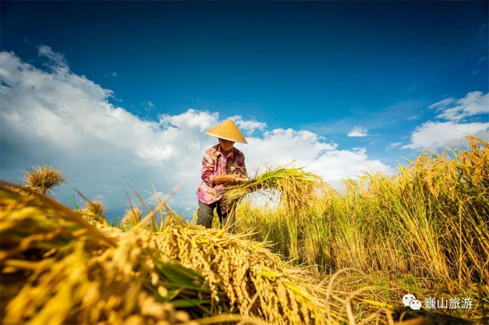 “晚稻在野,晨起有霜。阡陌寂寂,远山在黄。”位于哀牢山北段,与苍山相望的红河源头,清澈的河水穿过巍山坝子,金黄的稻田铺满了这片土地,稻穗在微风中相互碰撞沙沙作响,唱起了丰收的歌谣!