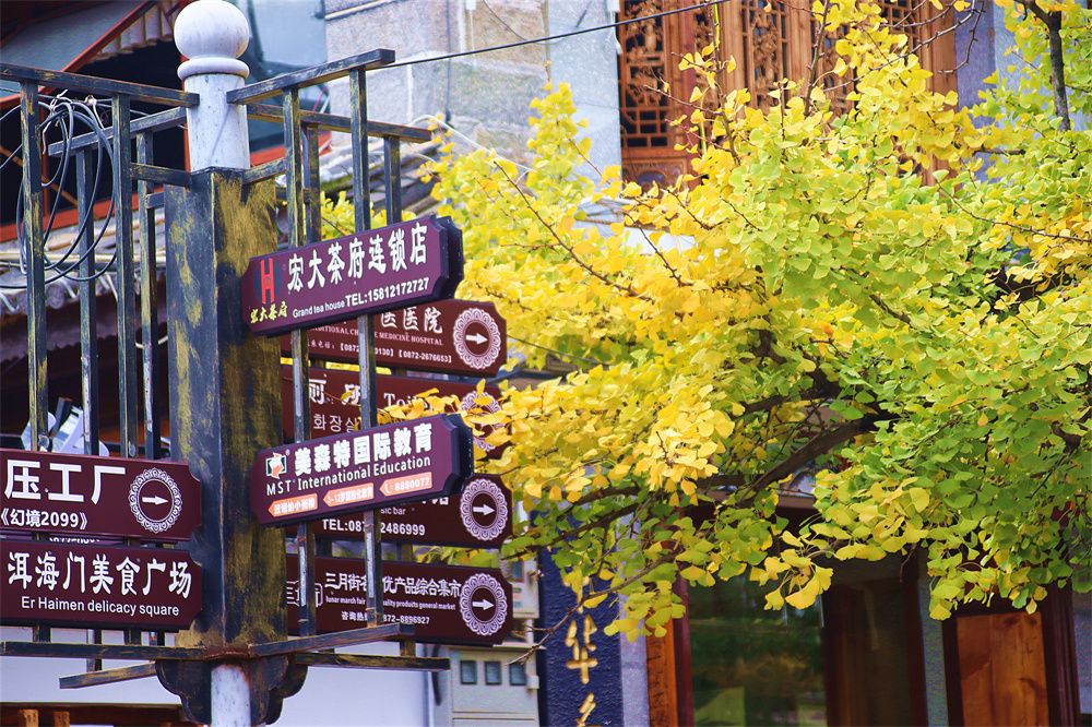 “一叶知霜降,一雨感深秋”。大理古城玉洱路的银杏微黄,秋风过后,街道上满是落叶,一眼望去,像是铺了一层厚厚的金色地毯,美极了!