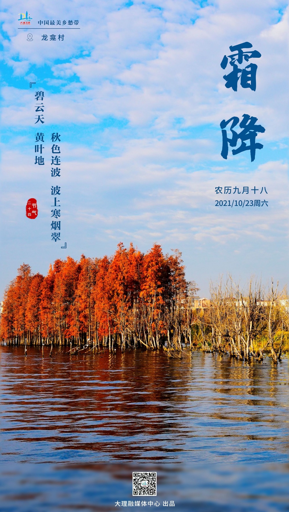 万物毕成,阳下入地,阴气始凝,天气渐寒始于霜降。逢此节气,苍洱大地树叶枯黄,万山红遍,层林尽染,天气渐寒,冬日临近。