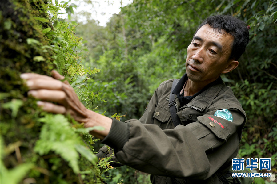 (图为罗开春在巡山护林途中(9月26日摄)。新华网 李浩 摄)