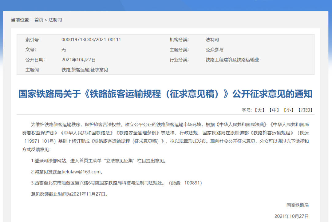 关于《铁路旅客运输规程(修订征求意见稿)》