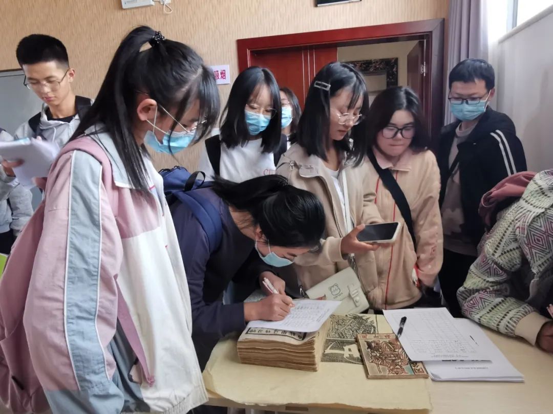 在专业老师的带领下,学员们按照步骤首先将文字和图案反笔画在纸张上,然后再将图案套印在胶板上进行精细雕刻,最后在刻绘好的胶板上刷以墨汁,用一张新的纸张覆盖胶板拓印,一幅幅精美的甲马作品就完美呈现在大家面前,看着自己精心设计并完成的作品,大家发自内心的喜悦。