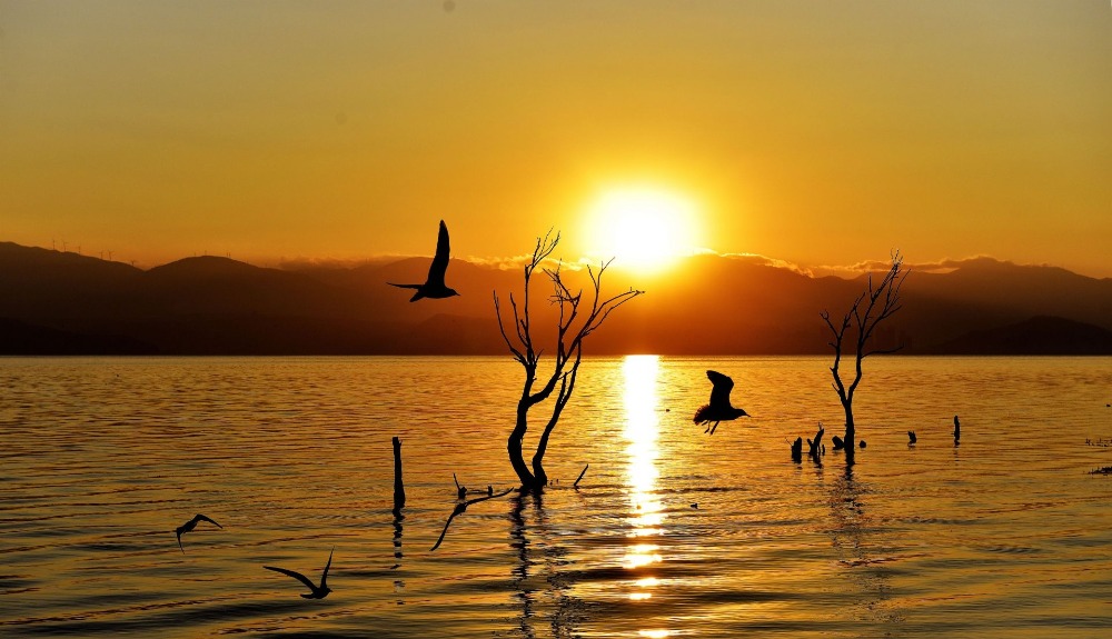 在银桥镇磻溪村,有一段靠近洱海的S型弯道。在这里,总能看到大军的身影,即使不见他,也能听到他弹起吉他唱起歌的声音,欢快、明亮,配上洱海边的落日余晖,最美!