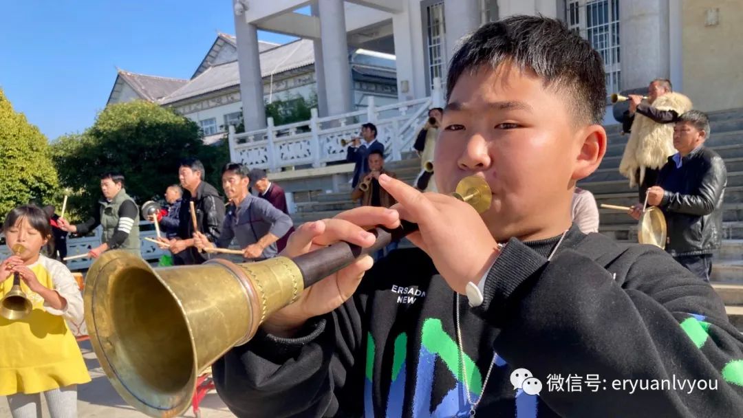 洱源唢呐乐《龙上天》演员们认真练习唢呐吹奏