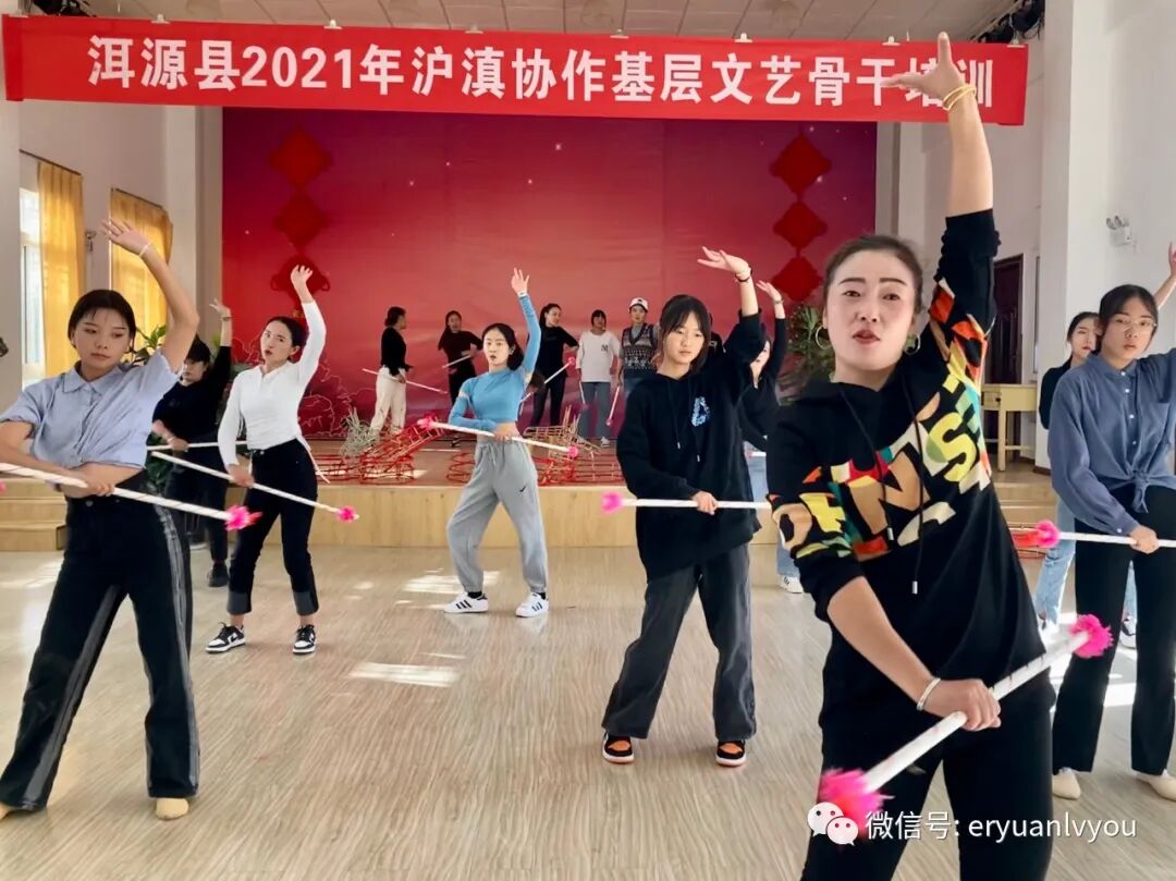 舞蹈《耍马金花霸王鞭》演员们认真练好每一个舞蹈动作