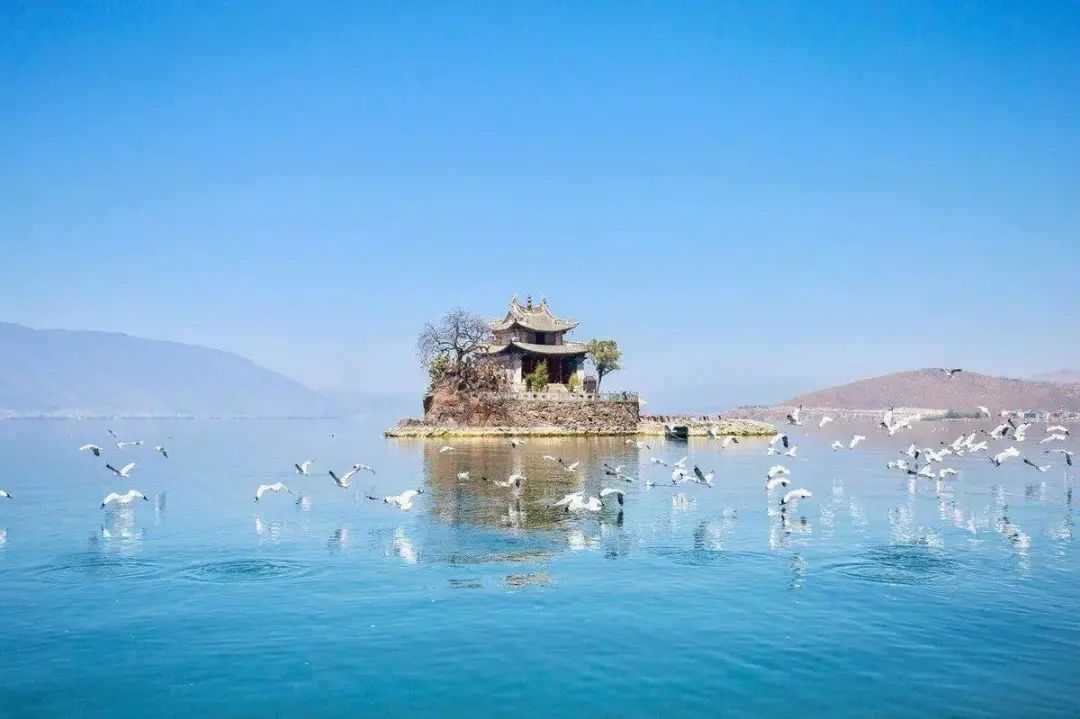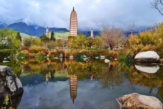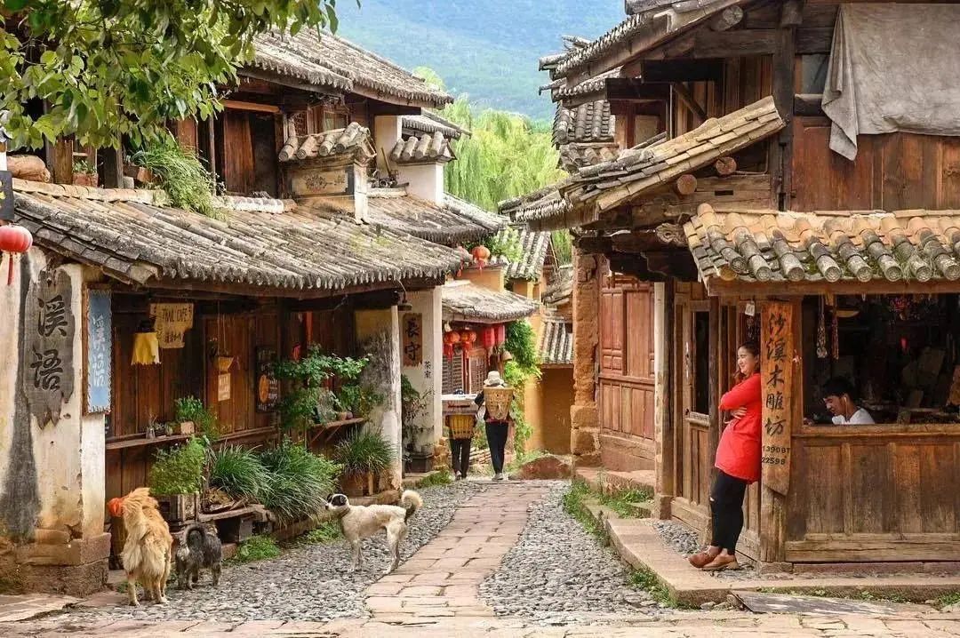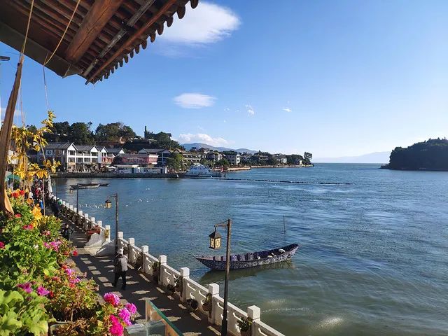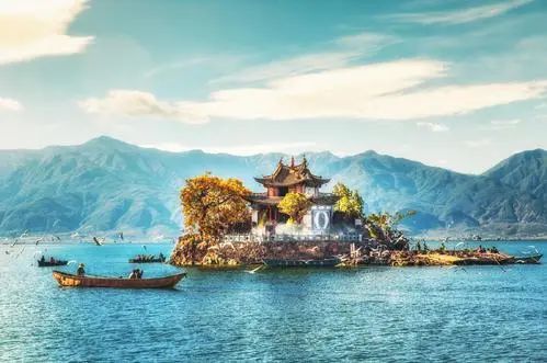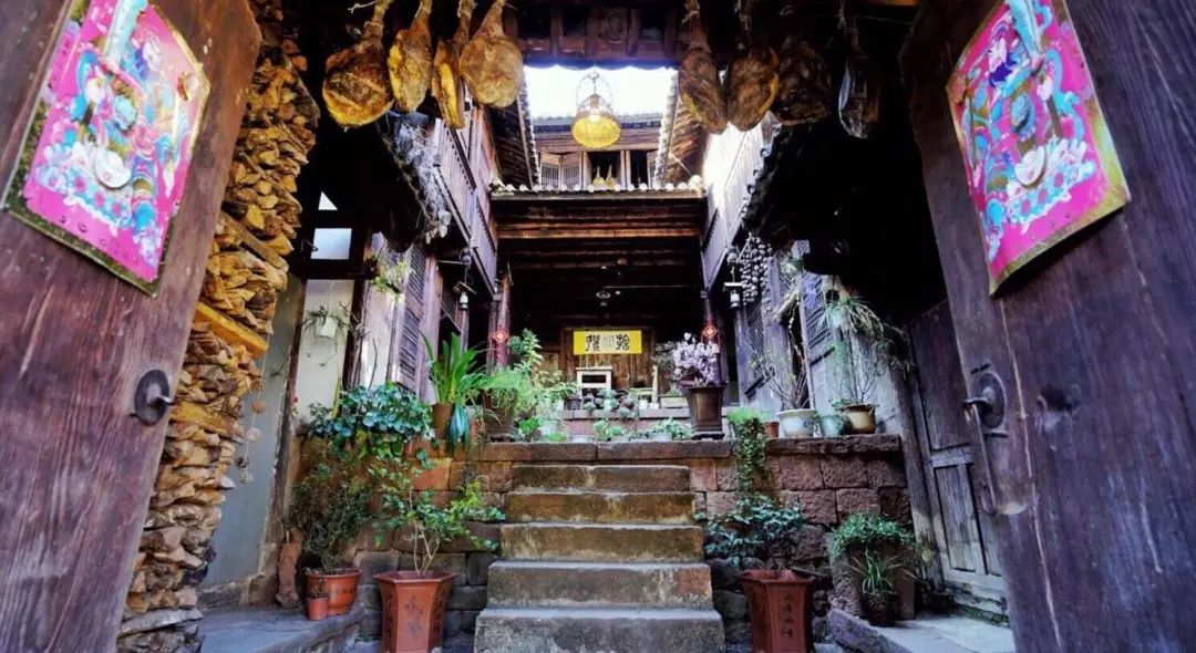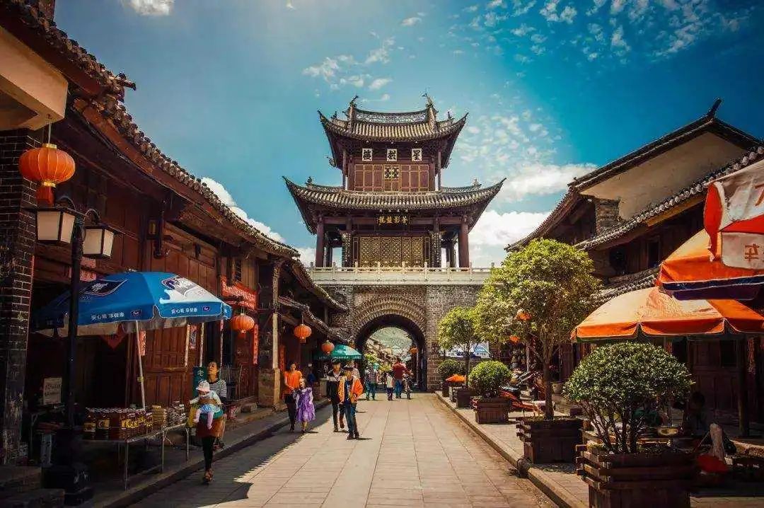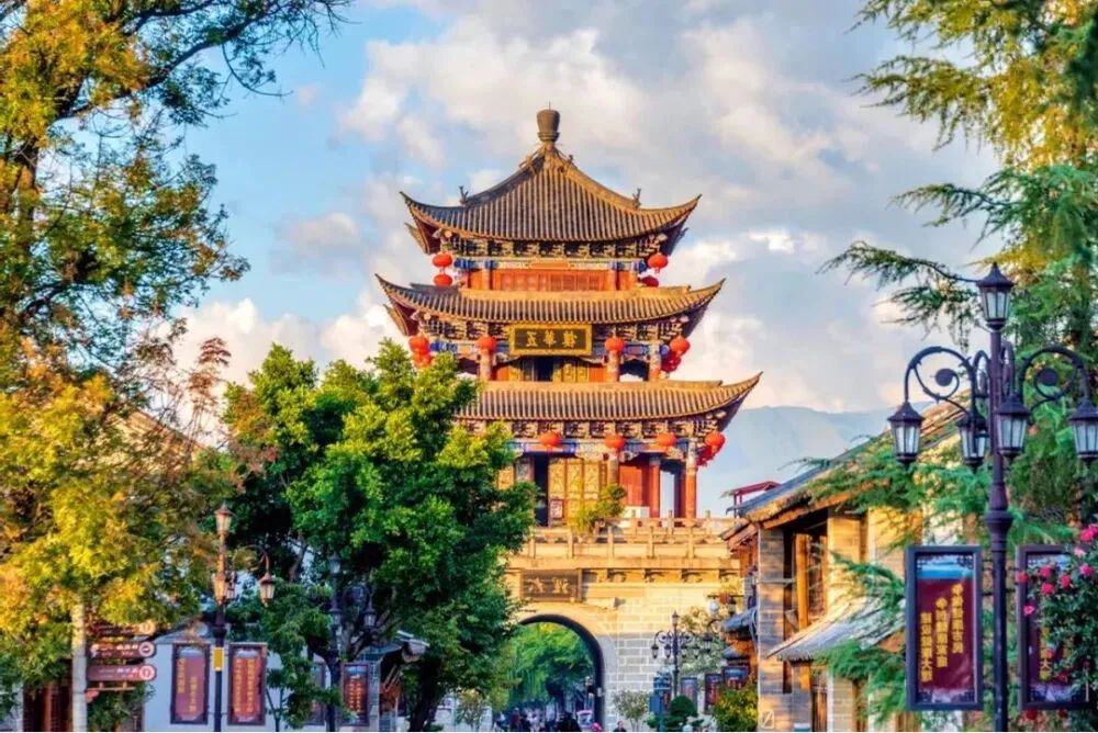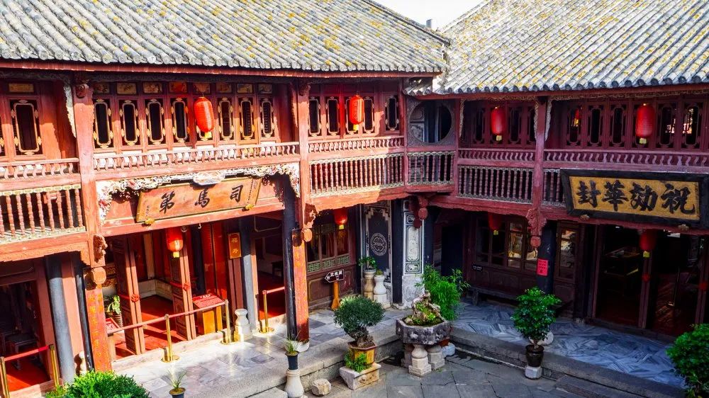 白墙青瓦,飞檐斗拱,彩色雕花,