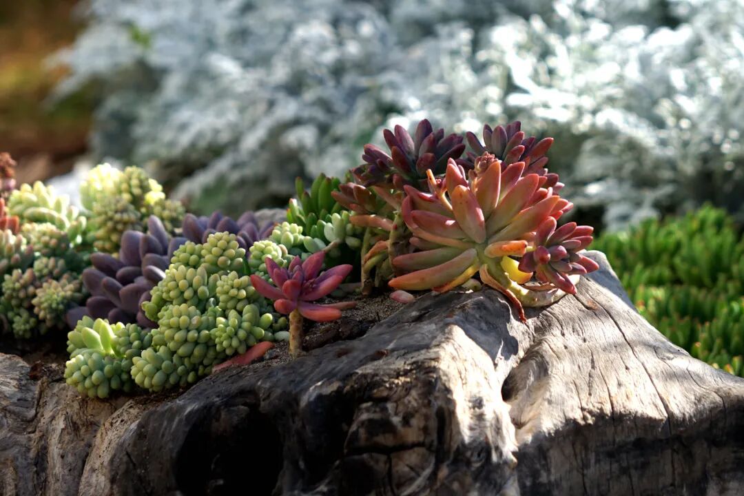 在沙地上起伏,在墙角边延绵,在朽木上盘踞……多肉丰富的颜色,小巧的外形,肉嘟嘟的叶片,十分让人治愈,收获了一众的粉丝。