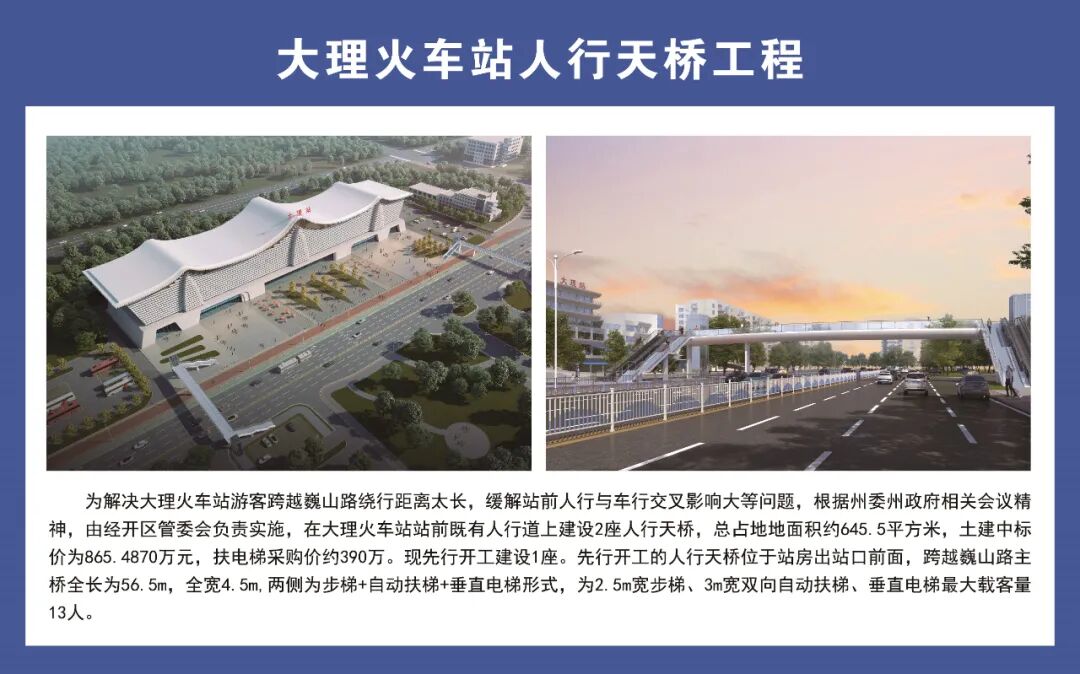 大理火车站人行天桥项目将在大理火车站站前既有人行道上建设2座人行天桥,总投资约2074万元,总占地面积约645.5平方米。