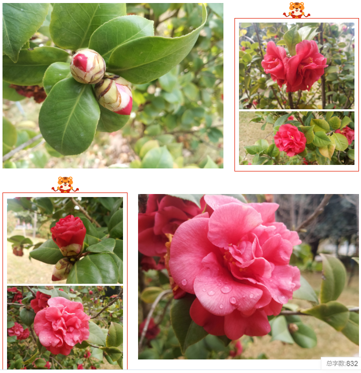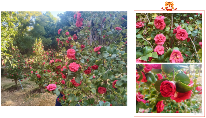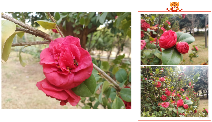 茶花园的茶花多为近年培育的新品种,单蕊复瓣为主,花朵较为集中。