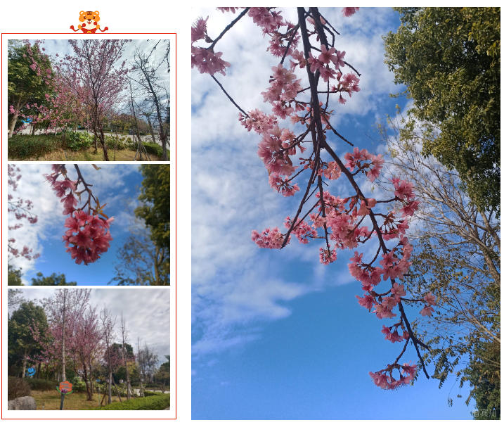 走进公园西门,树木依然健壮,各种树叶还在寒风中展示着自己最后的颜色,远远望去,枯枝残叶间,几株樱花绚烂绽放,花开枝头,挨挨挤挤,有大有小,有歪有斜,有浓有淡,多姿多彩,淡淡的花香,沁人心脾。因多方因素没能成行于去年南涧无量山樱花谷观赏樱花的遗憾得到了些许弥补。