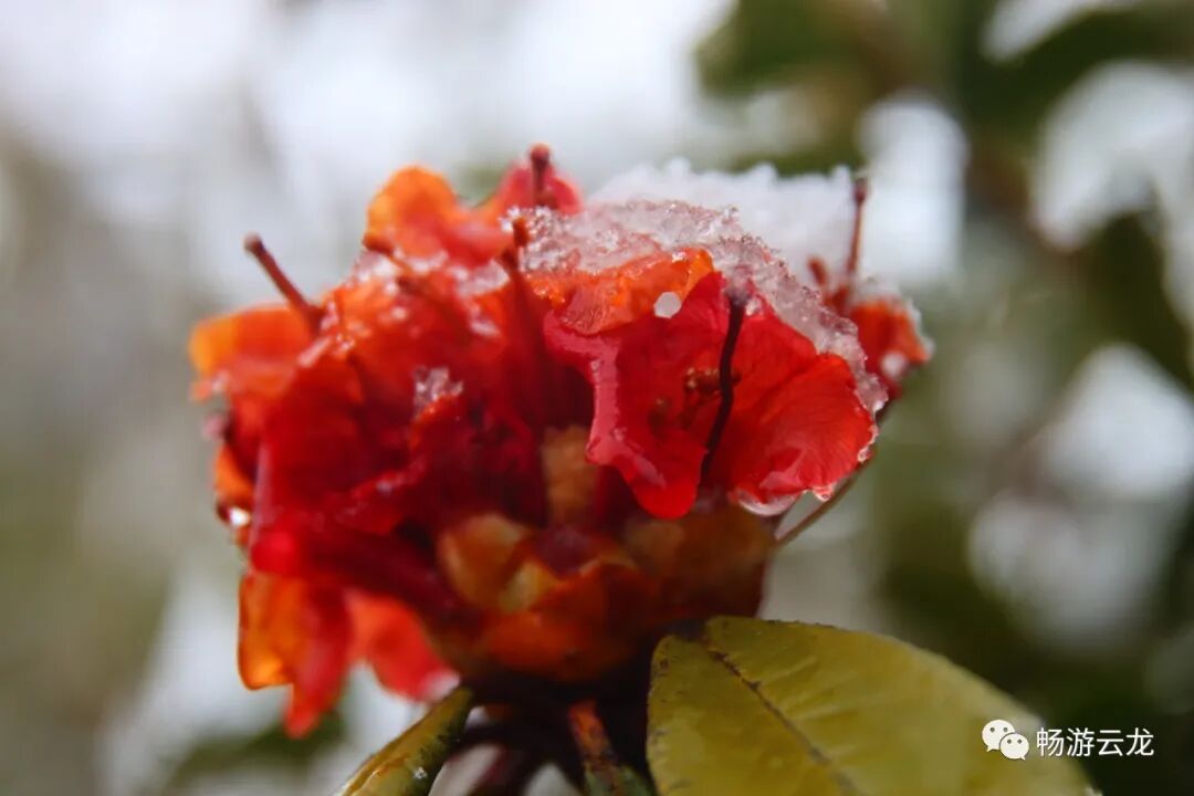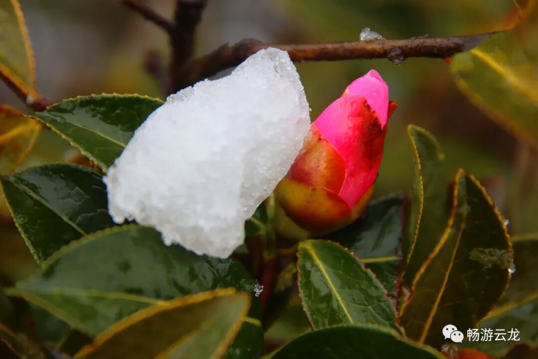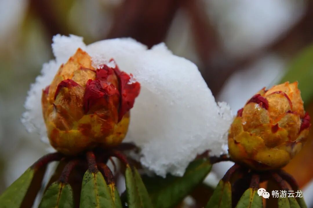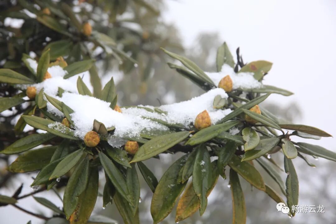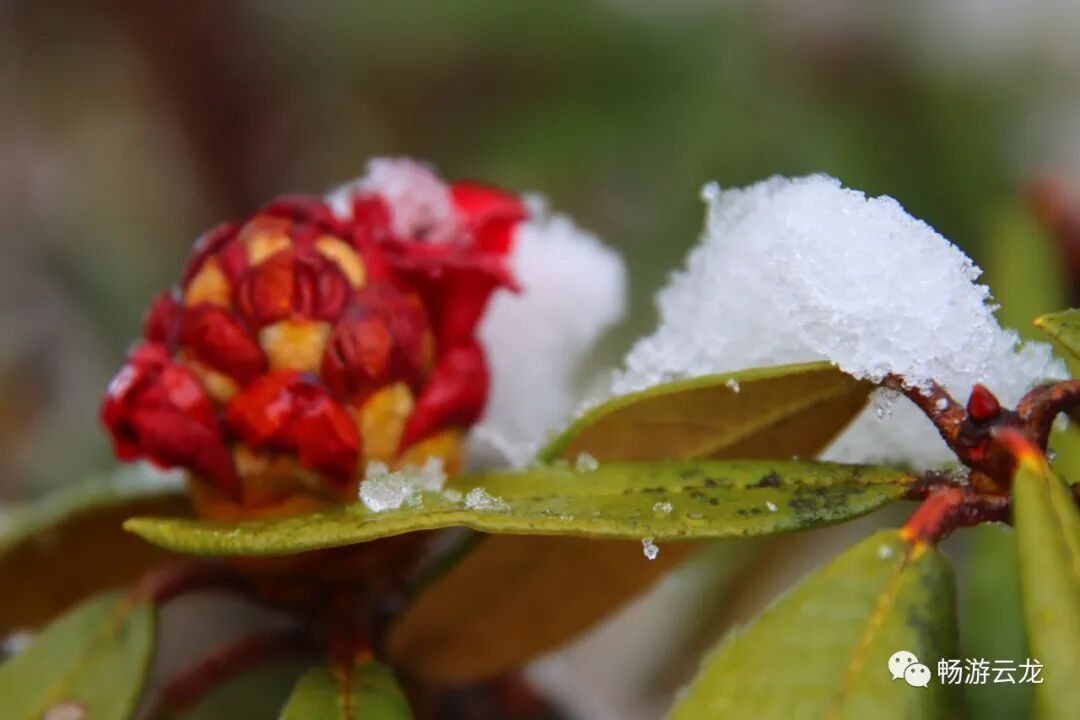 今年春节期间各地都下了几场雨,高海拔地区则飘起了雪,山里银装素裹,分外妖娆,引无数人狂抒诗意,发爆了抖音、快手与微信。2月6日我到云龙县西边的漕涧镇,去赶一个晚场,中午到漕涧镇后虽一直下着雨,但没有退却,寻了一张车直接到漕涧梁子上的六南公路丫口,见上百辆车停在路边,还有交警在值勤指挥,无数人在此赏雪景,我便融入其中,走在雪里有点冷,但看到那些无比喜悦的小朋友们在雪里的各种姿态,我也激情四溢,充满兴奋,拿起相机,选择角度,构思成图,拍了一些照片,特别是拍到了几枝含包待放的花蕾,原绽放的几朵红杜鹃(当地人俗称映山红)则已凋零,但雪里花蕾也别有韵味。突然间雪花又落,雾也起,能见度极低,只好放弃拍摄下山。下山后又去坝子感染了一次梅韵。