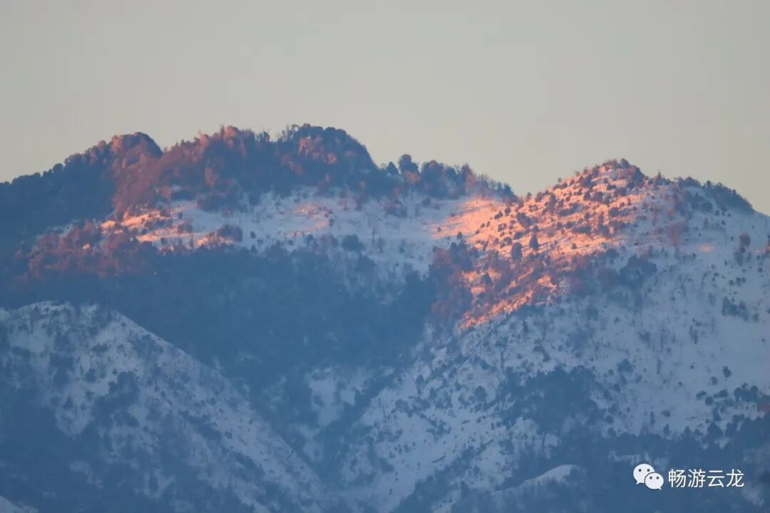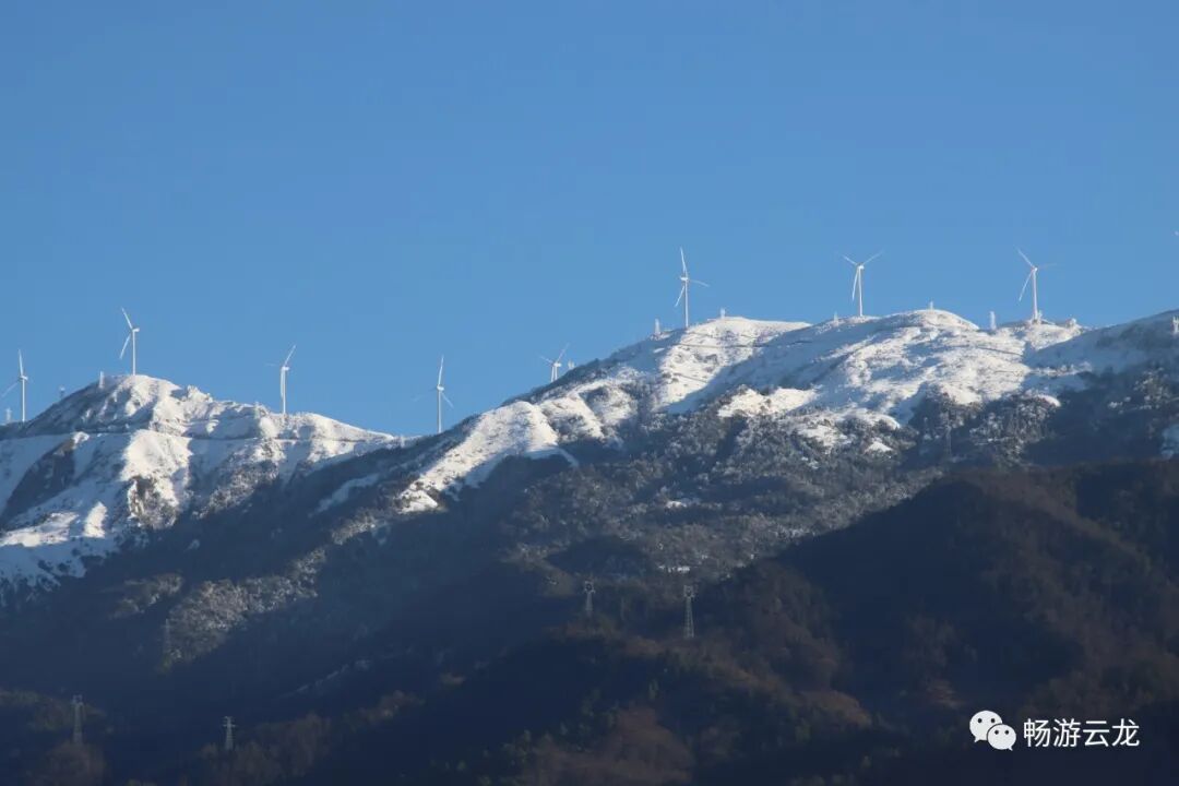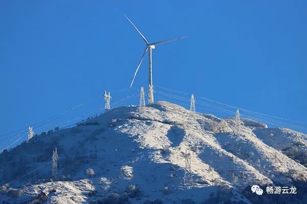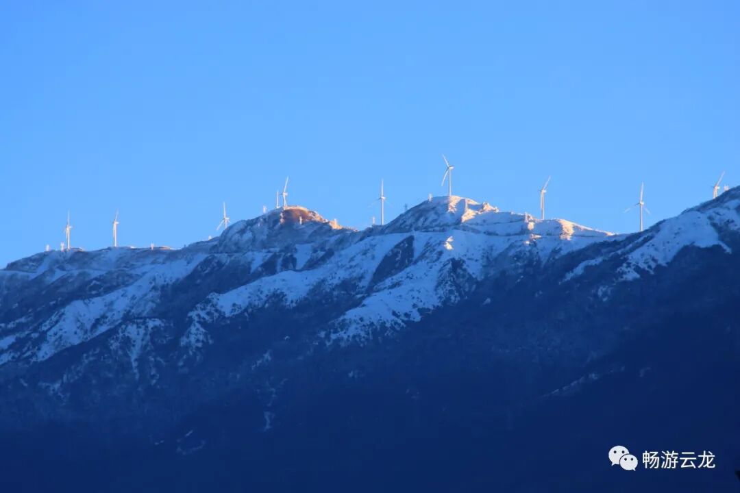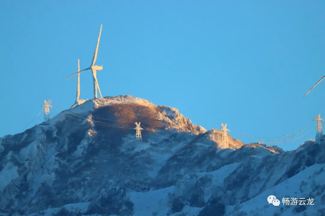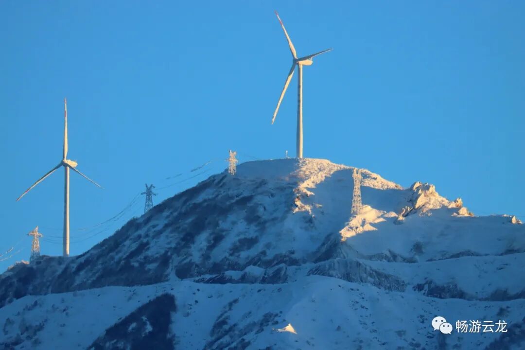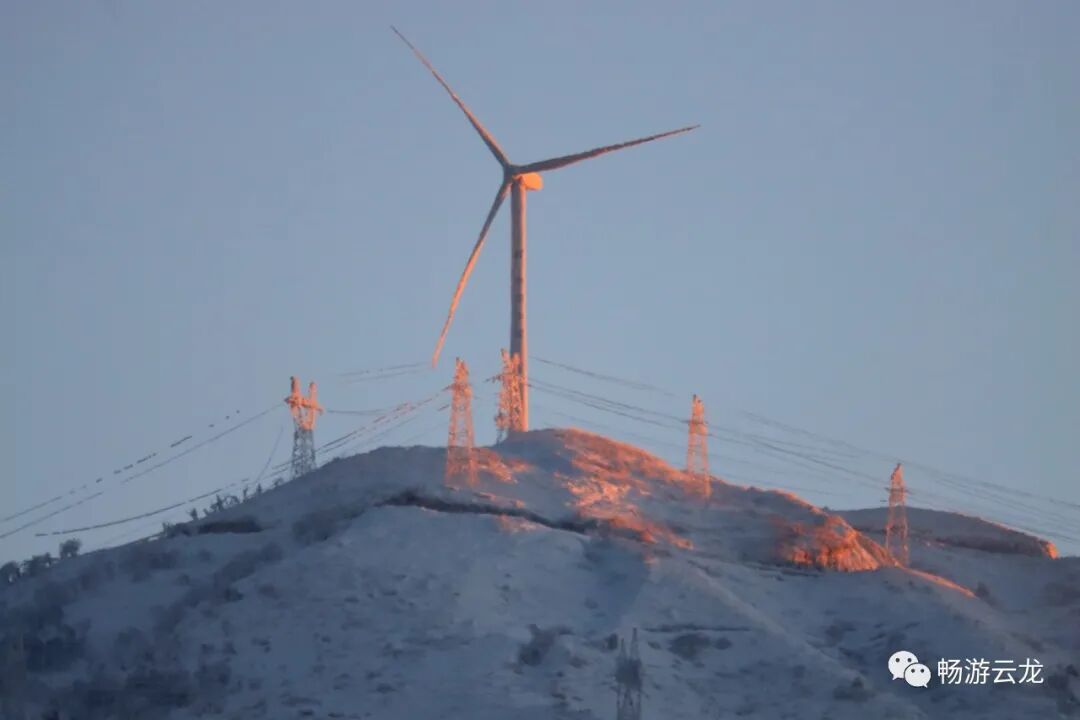 2月7日凌晨,打开宾馆的窗户,仰望远处的漕涧梁子巍峨屹立,白雪皑皑,风力发电的风车清晰可见,矗立于山巅,独具风骚。往常雨后或雪后,漕涧梁子多雾,时常见不到真容,今日则万里无云,蓝天映衬,清晰无余,如含羞的少女揭去朦纱,亮丽的身材展示在你的眼前,给人一种神奇的美。当清晨的那缕阳光与洁白的雪和风车相融在一起的时候,大自然又绘就了一种美,只能用心去领略的诗情画意,感悟自然的神话情素。