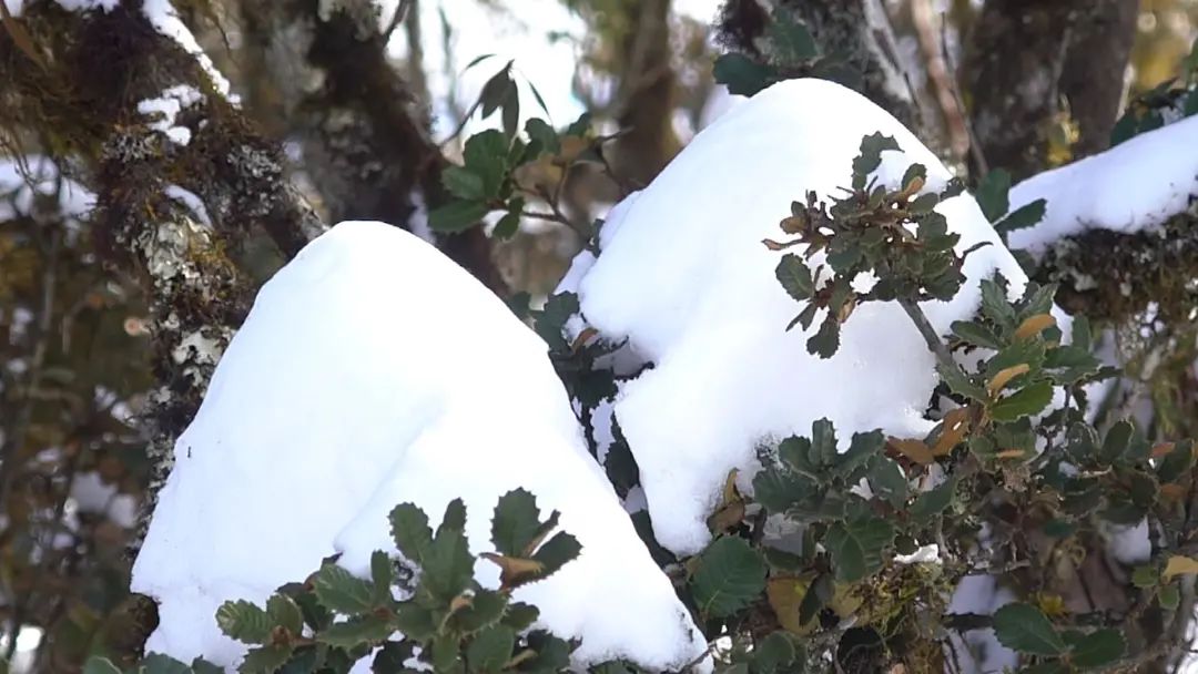 落在树上和树下的积雪晶莹剔透