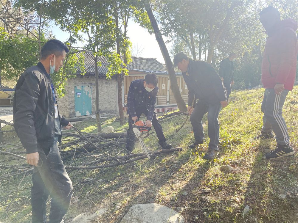此次活动共有59名党员参加,清理的范围从天龙八部影视城西门至索道食堂,总长800多米,清理枯树8棵及道路两侧防火隔离带的枯枝杂草等可燃物,共清理枯枝杂草近500公斤。