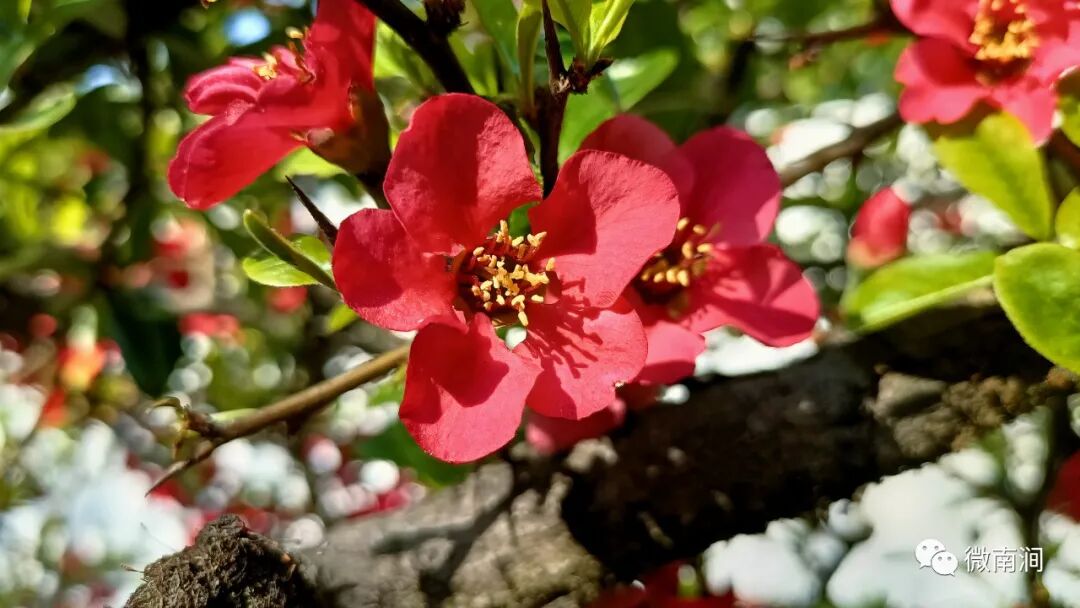 春天百花盛开,争奇斗艳。到山里您会发现红色的马缨花、木瓜花;粉红的桃花、山茶花;白色的棠梨花、李子花、樱桃花、梨花;紫色的报春花、三角梅;黄色的迎春花、油菜花;绿色的核桃花、兰花,还有一些不知名的小花,百花齐放,好不热闹!