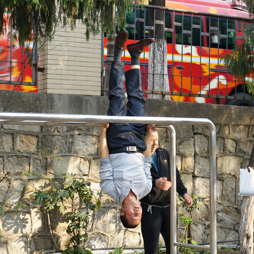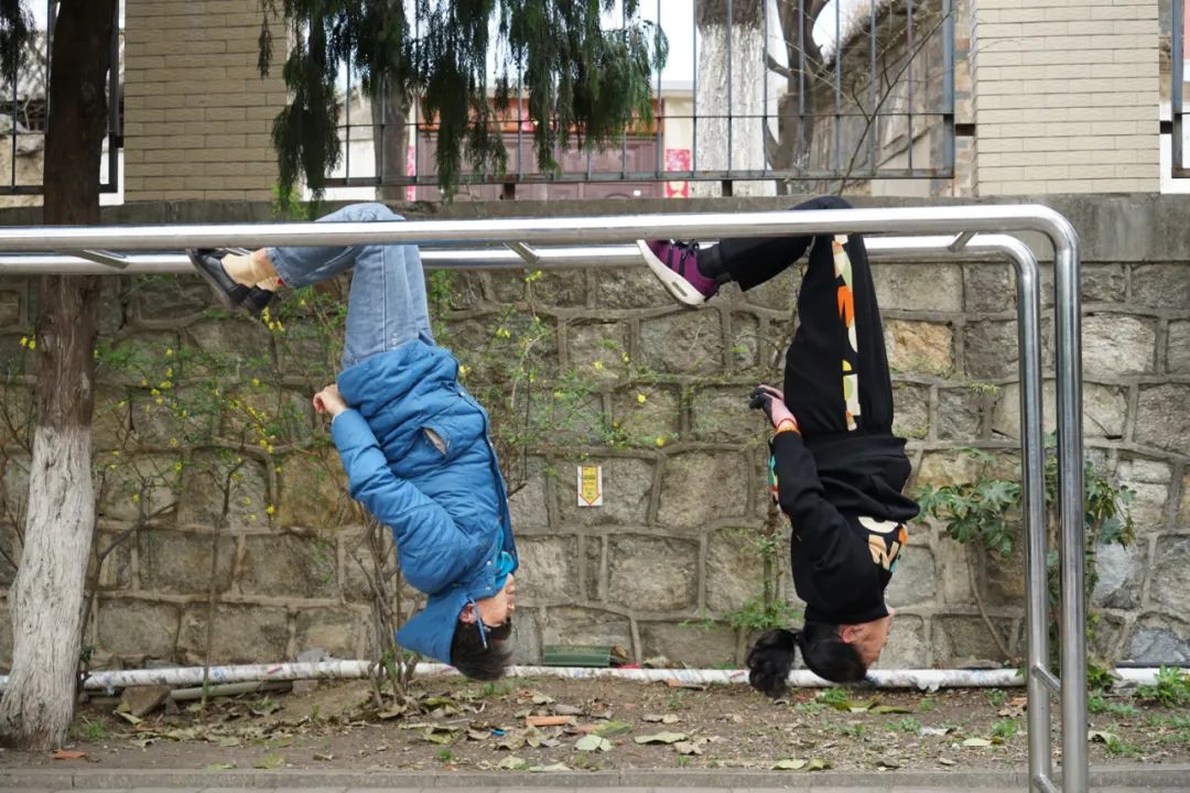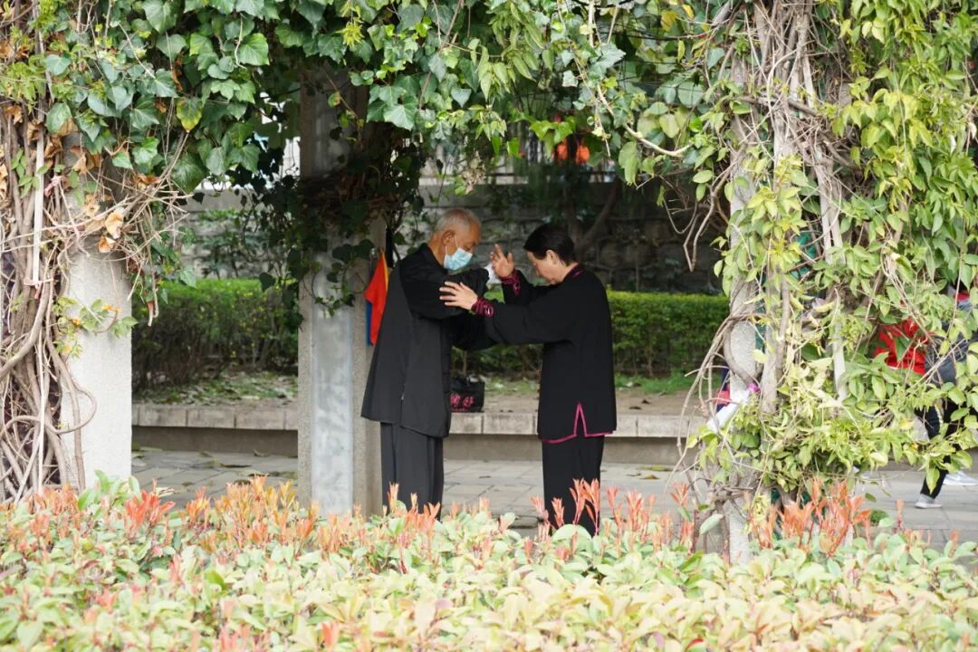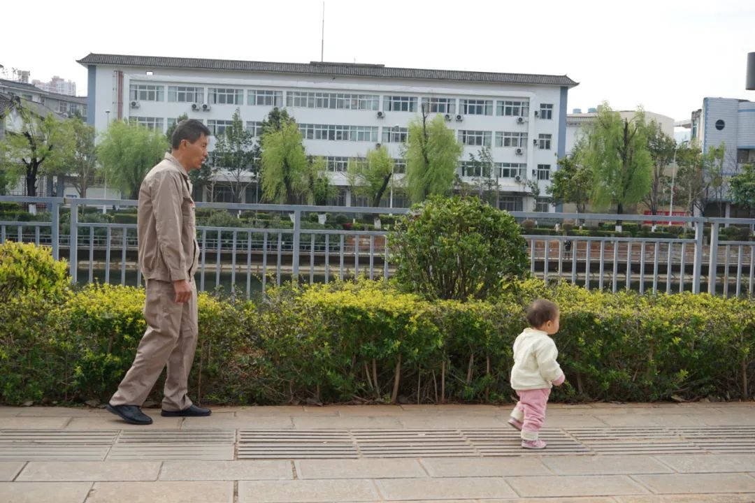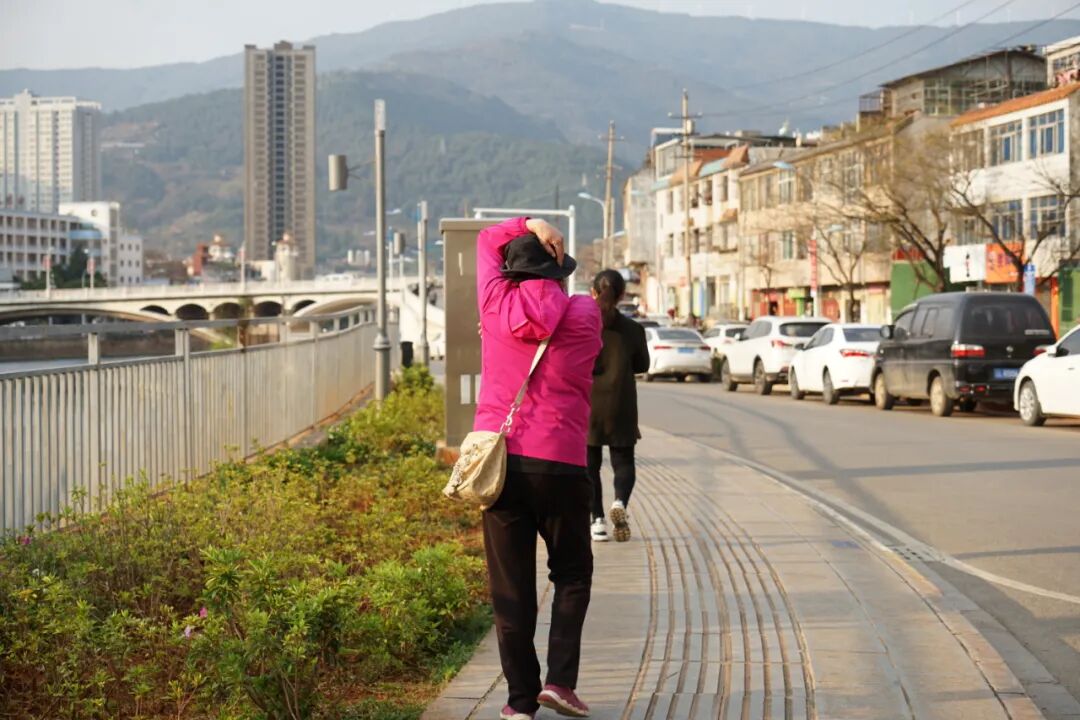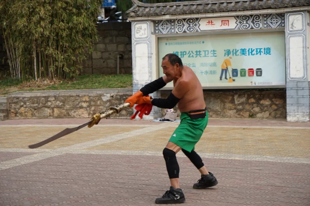 人们在健康步道上慢跑、晨练、起舞、练拳