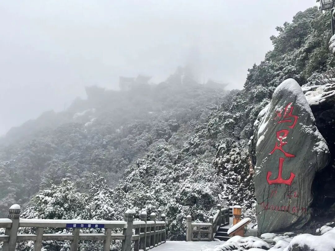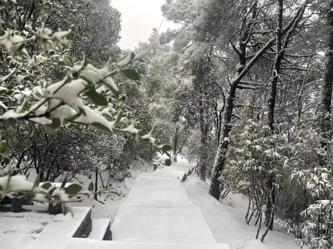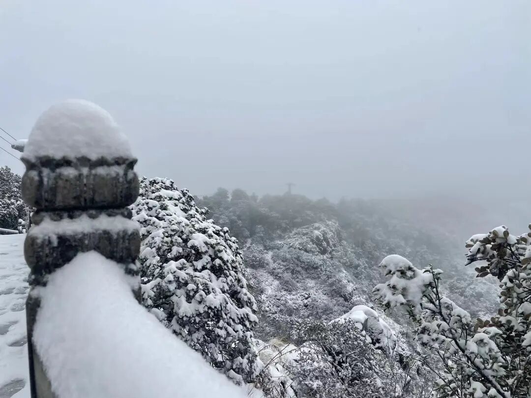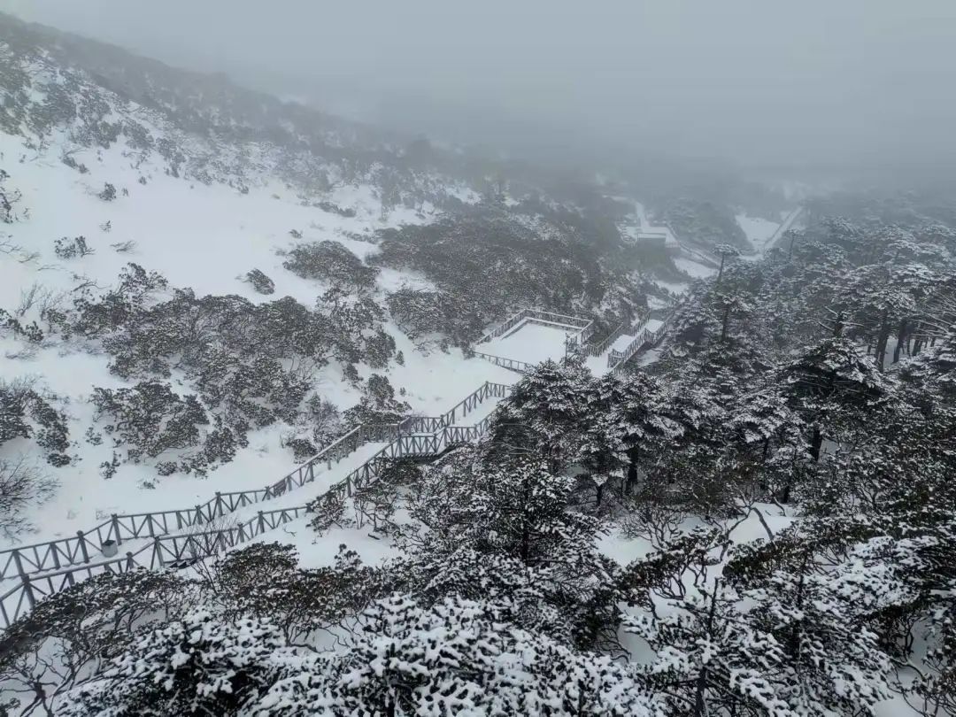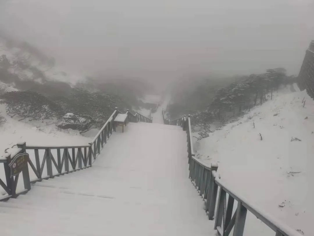 游览栈道积雪已达5厘米