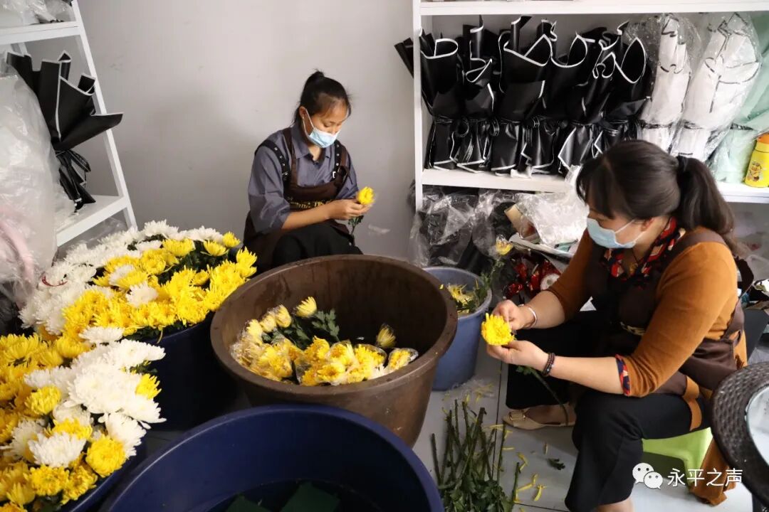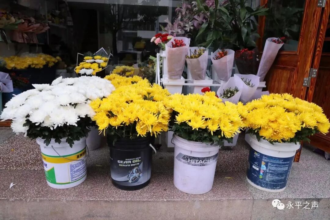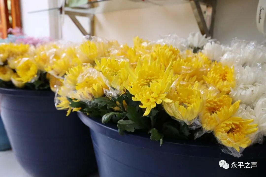 3月31日,在永平县城的花花家鲜花店内,菊花已成为店铺主销品,摆放在店内醒目位置。老板张女士一边修剪着菊花一边介绍说,上周开始,她就备下了1000多支的黄、白菊花,便于顾客选购。相比去年,鲜花进价稍微有所便宜,店里销售的大小花束售价在20至80元,花篮则结合顾客需要或消费金额进行包扎。
