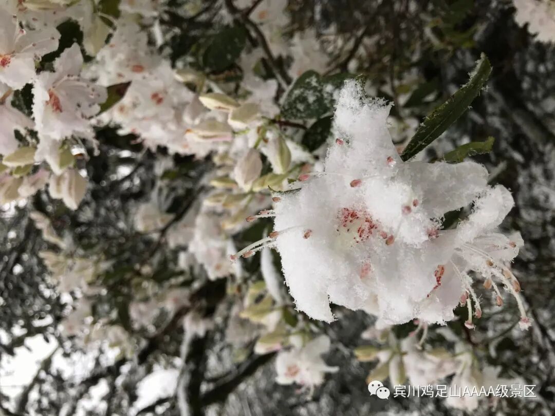 如此的雪景,对于气候炎热的宾川来讲,很多人还是比较兴奋人,在县城与鸡足山灵山之间演绎着冰与火的热情,雪中看金顶,赏杜鹃,暮春踏雪寻美,绝对在你想像之外。