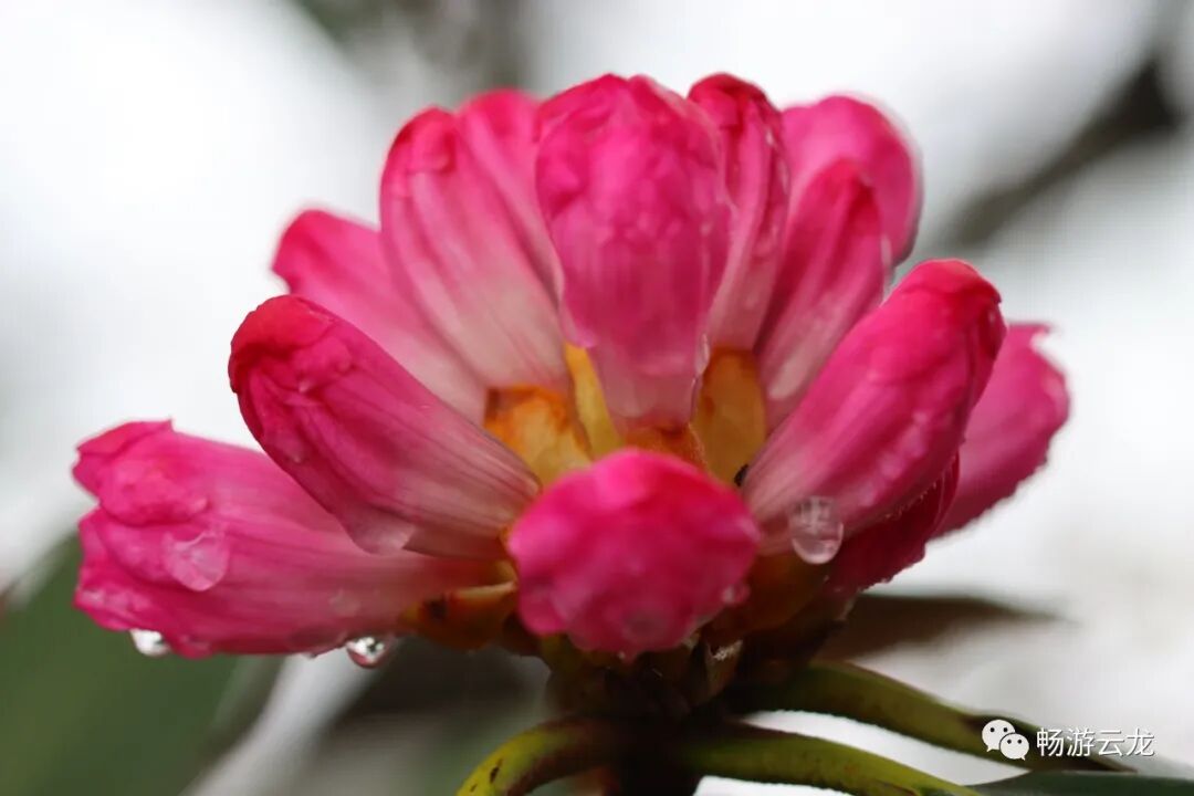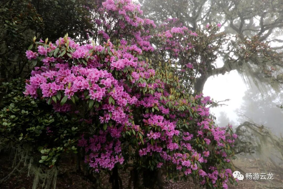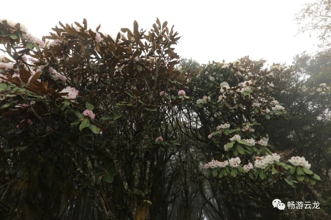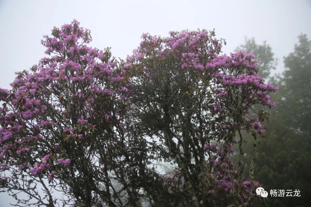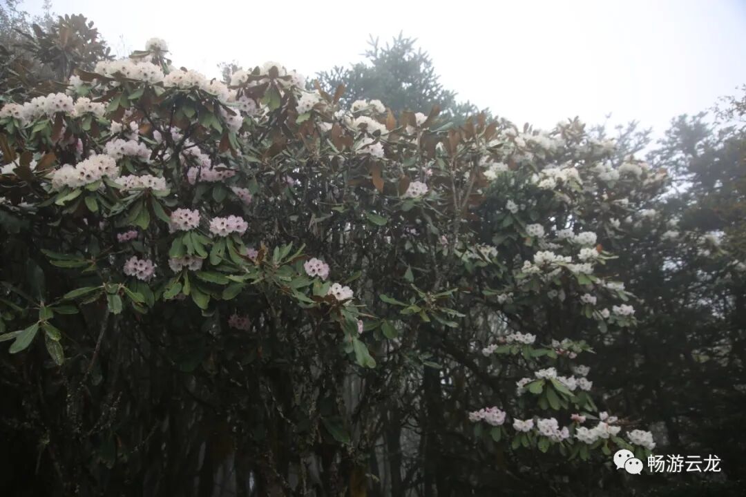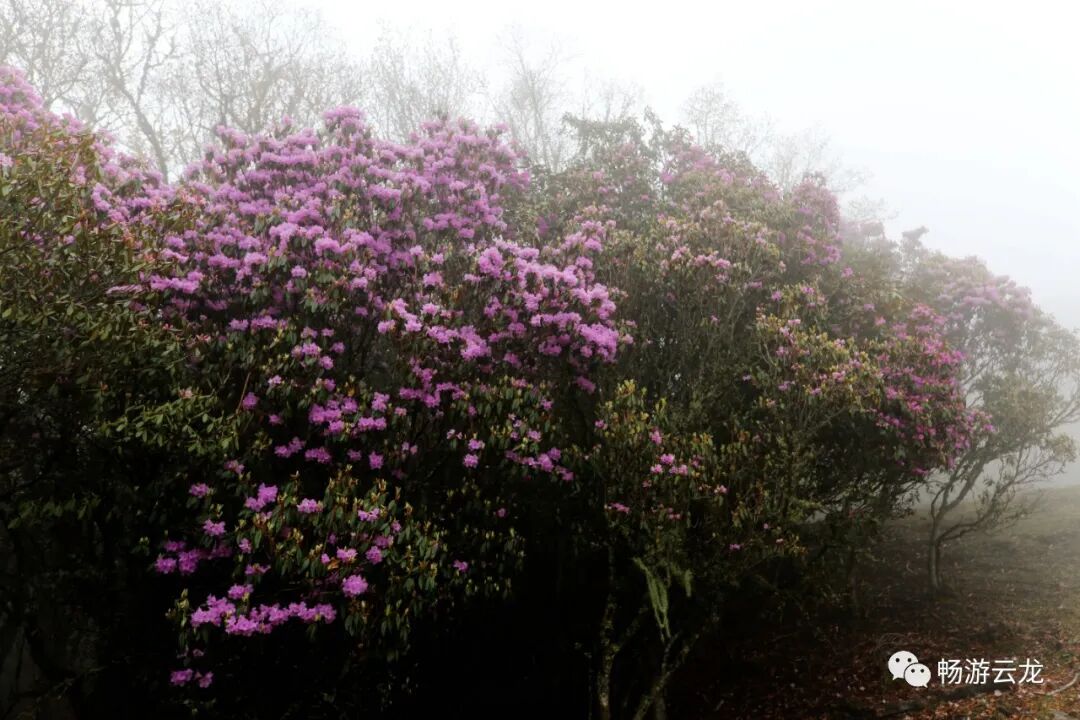 “ 五·一”节未远行,宅在云龙,今日上午翻看已往几年的照片,突然看到2019年5月2日曾拍到上大坪的杜鹃美景。今年也总想上去拍一次,但一直未成行,今日恰好有时间,查看天气预报有云或小雨,估计不会有大雨。于是邀了朋友前往。一路上各种杜鹃开得较艳,点饰山野,突显大自然的旖旎。来到上大坪即开启行摄之旅,公路边的野樱花还开着几朵,雨后也有别样的美,走进草地,爬上山坡,则是雾气蒙蒙,能见度不足十米,但已启行,便没有退意,还是前行,到山顶,见想要看的那些杜鹃开得正艳,比前几年开得都好,特别是高山杜鹃,前些年每棵就开几朵朵,今年却满株都是花,诱人得很。雾气腾腾,从山顶飘过,所形成的自然景观,就似影视中的仙境,给人如入天境之梦幻,作为摄影人,也许讨厌此刻,但我没有,因过去常摄有阳光时的美,记忆中还没有留下过雾里的花,今日就来了个雾里看花,寻求别样的诗,分辨这变幻莫测的世界,把握这摇曳多姿的季节,用手里的相机,记下这个世界清清楚楚、明明白白、真真切切的美。如果有时间,您可以去山里走一走,享受自然馈赠,领略一把游客的诗情画意,如没有时间就浏览一下别人拍的片,美也能荡漾您的心田。