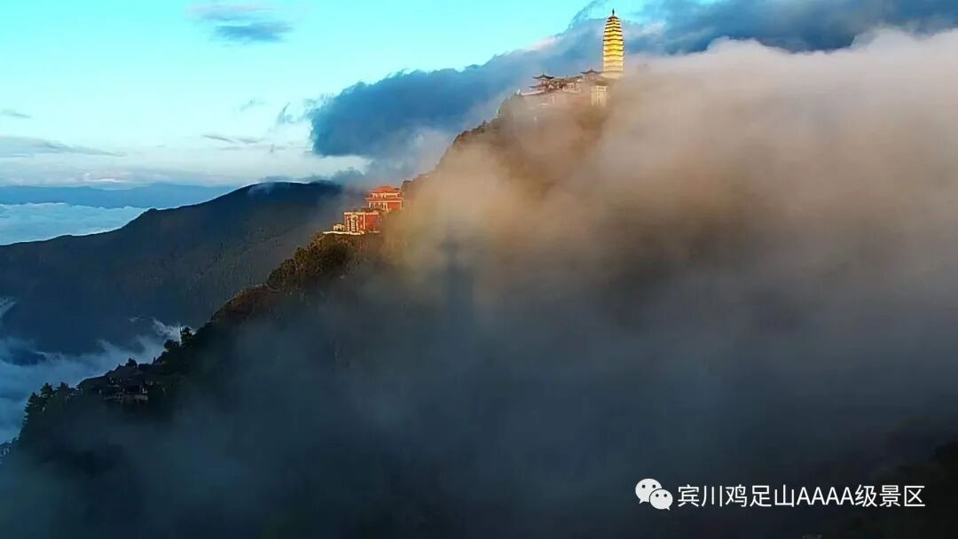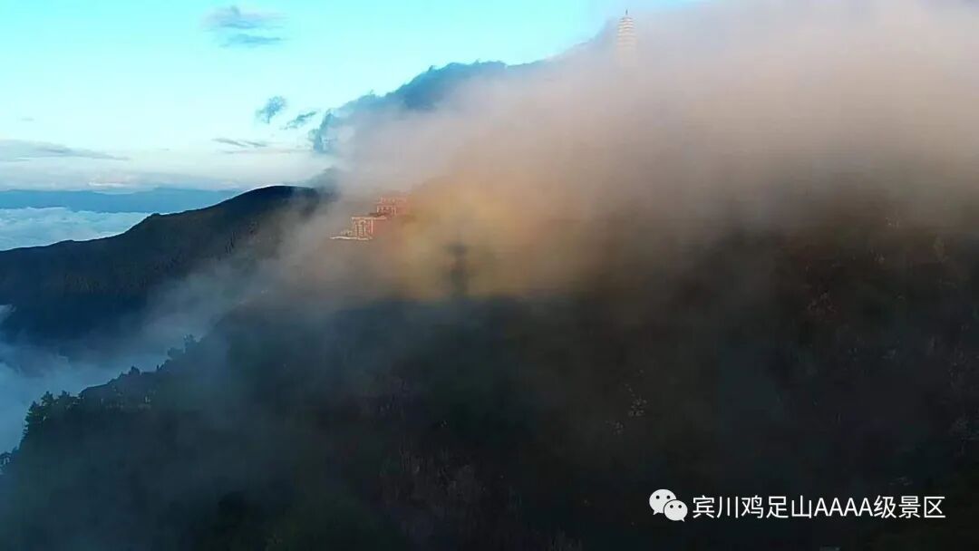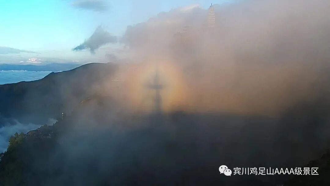 连日的雨雪天气,终于放晴,清晨的鸡足山雾气缭绕。今晨6:48分,鸡足山再现“佛光”奇景,幸运的游客邂逅了这一场神奇的天象景观。