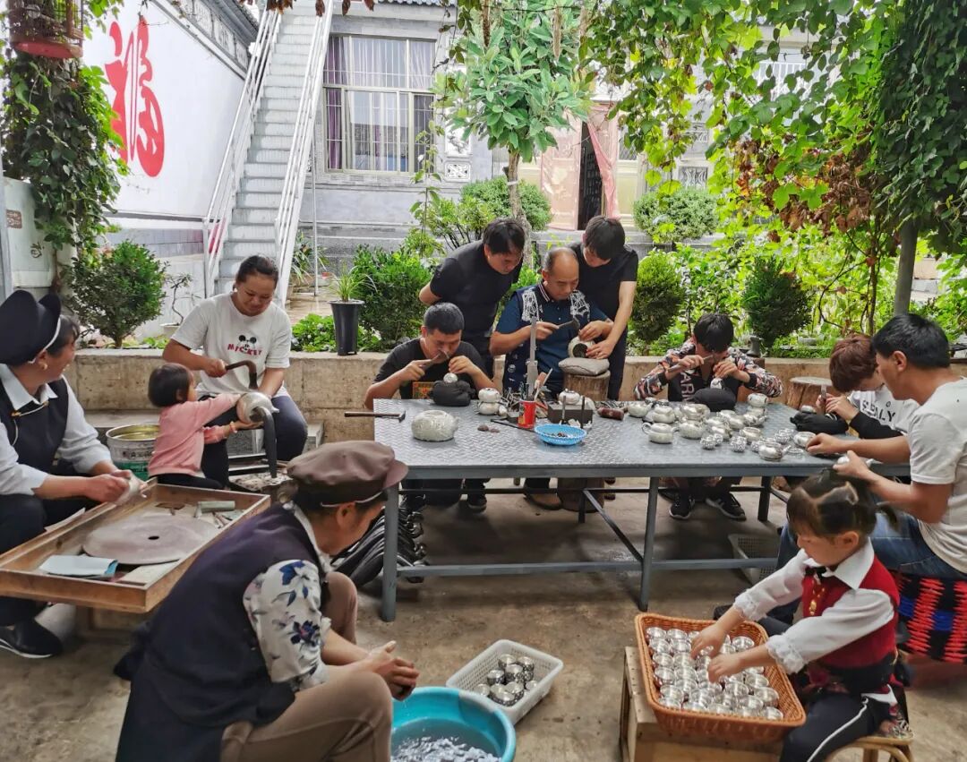 通过建立银器手工艺集中研发和设计中心、银器手工艺文化研学和教育培训中心,银器手工艺非遗传承展示中心采取“师徒培养”方式,积极开展产品研发设计、研学培训,培养了一批乡土人才,涌现出以中国工艺美术大师寸发标为代表的一批民族手工艺大师,银器锻制技艺被列入第四批国家级非物质文化遗产代表性项目名录,银器锻制技艺非遗传承人达82人。