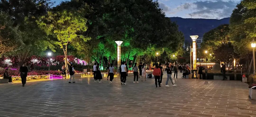 当夜晚还来不及闭上眼睛,黄龙潭迎来了一天中最为热闹的时段,三五成群的舞蹈爱好者,伴着音乐的节奏,将广场舞的流行诠释得淋漓尽致。