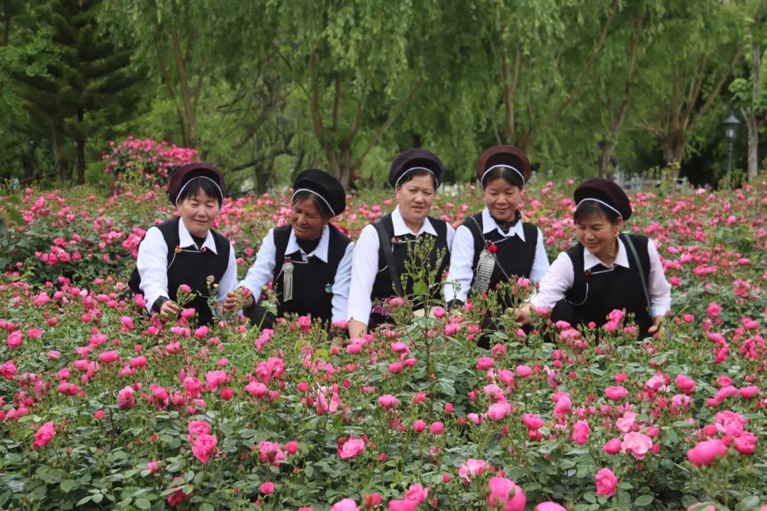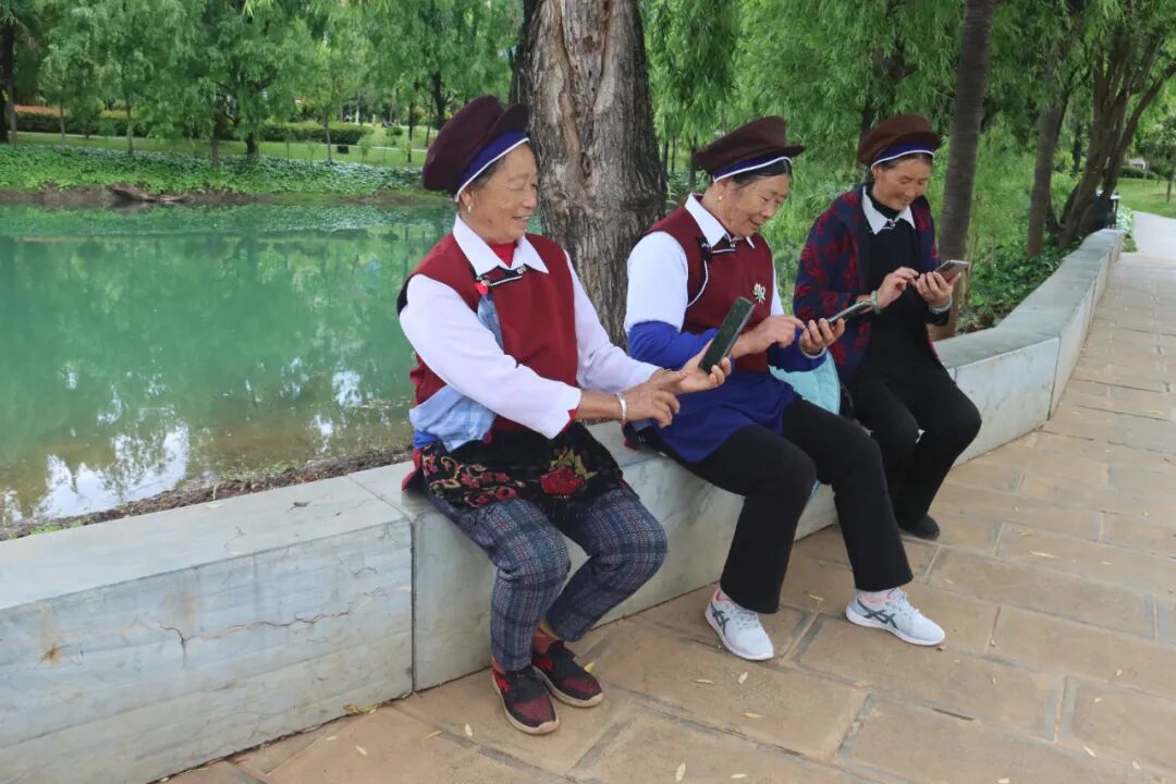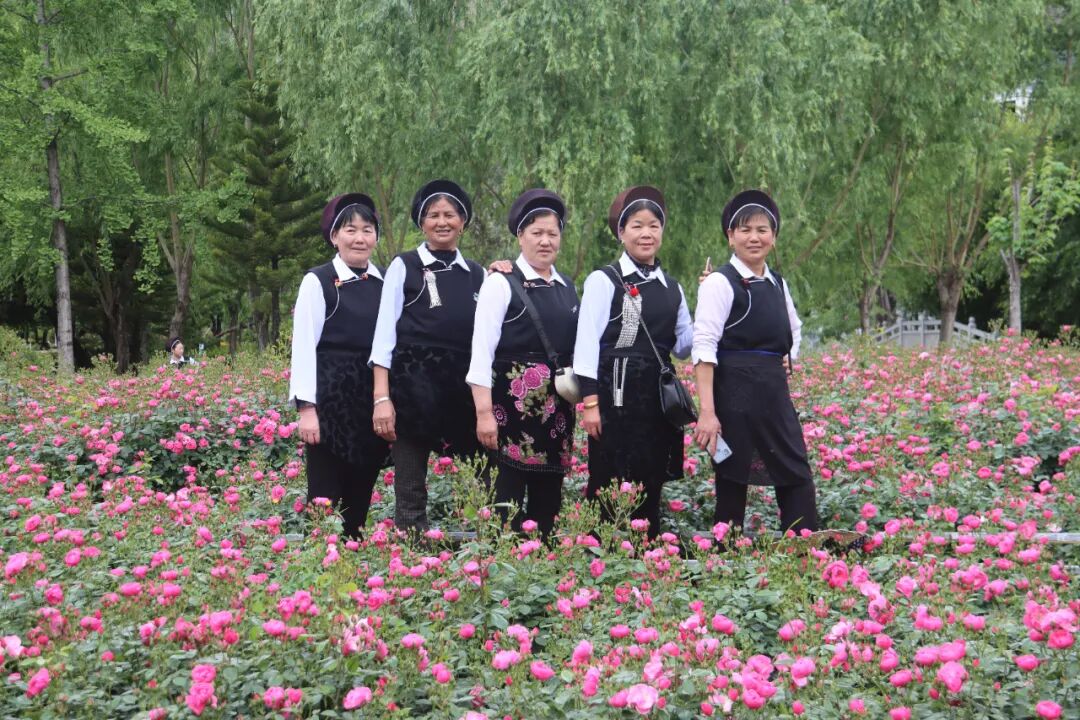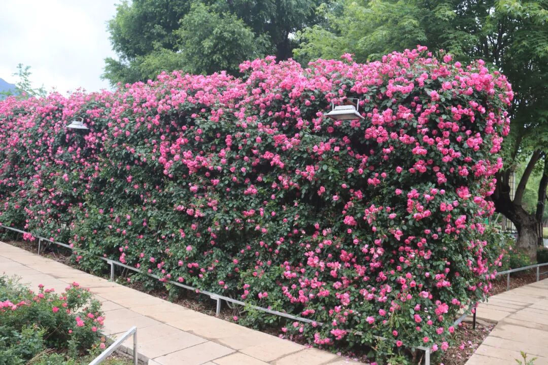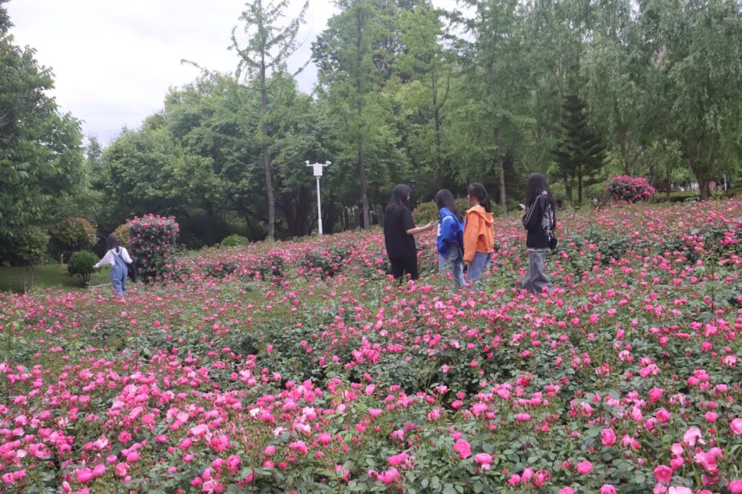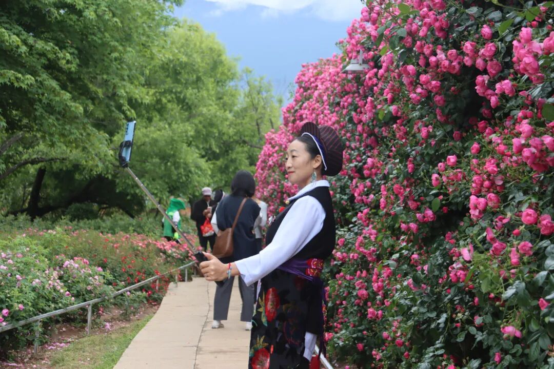 五月的黄龙潭公园里,鲜花开遍,花墙花海惹人醉。有人在唱白族田埂调,有人在跳舞,有人在自拍,有人在发小视频,有人在亭子里吃零食,有人领着小孩在花间散步,各得其乐。