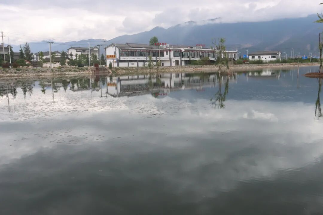 身穿白族服饰的妇女,在黄龙潭的长堤上摆出各种姿势,发抖音、玩自拍。堤旁潭边的柳树历尽沧桑,依然向游人诉说着春天的故事。