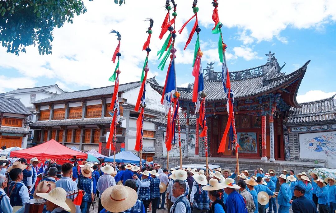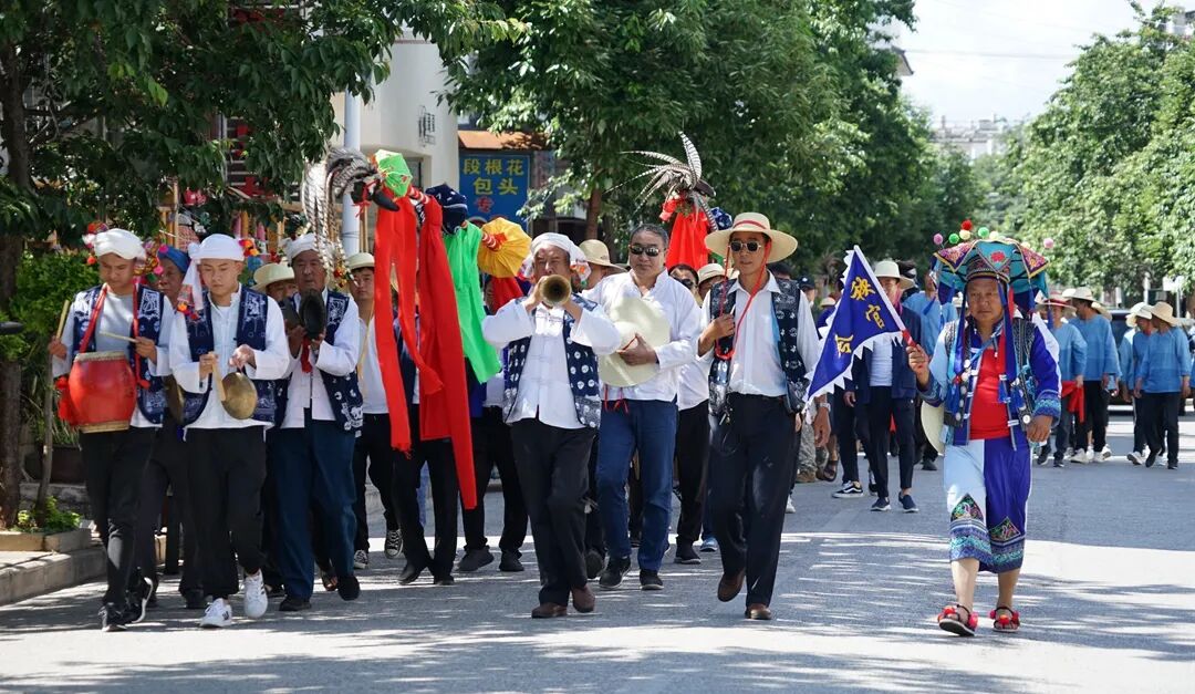 一大早,周城村便热闹起来,在“秧官”的号令声中,阿爷阿奶唱响大本曲,姑娘、小伙跳起欢乐的霸王鞭,“迎秧旗”仪式正式开始。