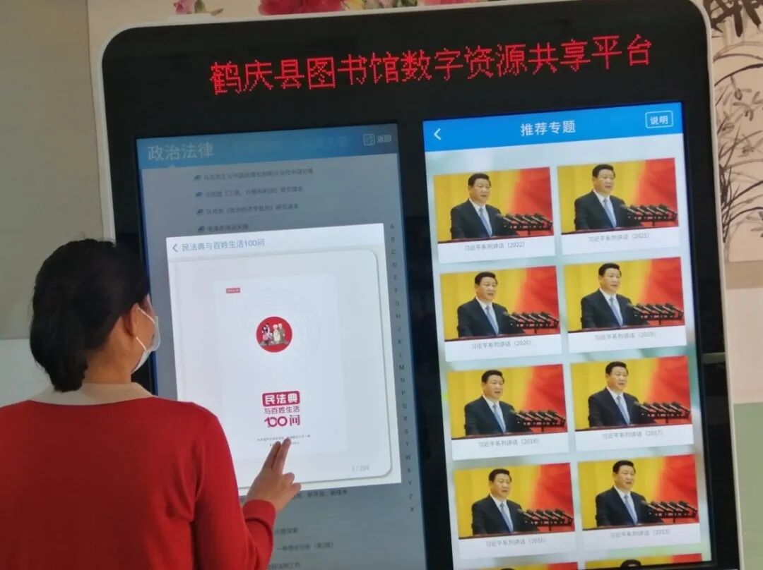 四是广泛宣传图书馆服务职能和馆藏数字资源。通过扫码下载鹤庆县移动图书馆APP,赠送定制水杯活动,向群众推广图书馆数字资源,免费阅读海量线上书籍,体验无纸化阅读的便捷;引导群众关注鹤庆文旅微信公众号,时时了解图书馆活动信息,让更多群众关注图书馆,切实推进全民阅读推广进程;利用数字资源共享平台设置学习专栏,向群众普及各类知识,让更多人爱上阅读,感受书香魅力。