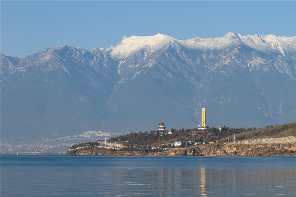 推荐理由:罗荃半岛位于洱海东岸,与大理古城隔海相望,这里有洱海东岸最显眼的标志建筑——罗荃塔,还有天镜阁、八仙楼等名胜景点。罗荃塔始建于唐代南诏时期,现存为2010年重修,塔高42.9米,保留了四方密檐和无顶的主要特点。天镜阁是历史上洱海四大名阁之首,因“山环吞海,澄然如镜”的地势和景观,得名“天镜”,共五层,外观飞檐斗拱、翘角凌空,站在阁上环廊,苍洱全景一览无余,尽赏山海大观。