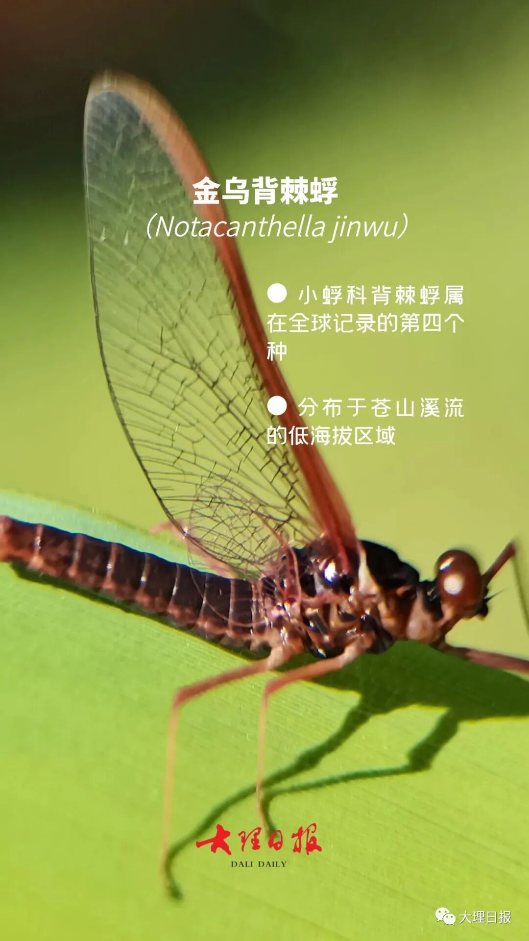记者从大理大学东喜玛拉雅研究院获悉,近日,大理大学东喜玛拉雅研究院团队在大理苍山及鸡足山发现蜉蝣目小蜉科背棘蜉属一新种——金乌背棘蜉。