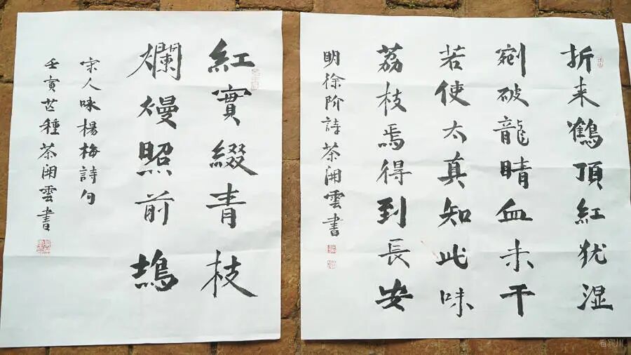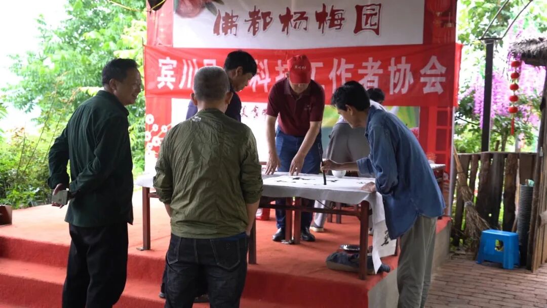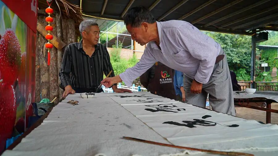 宾川县书法家协会的老艺术家们也来到杨梅园,用手中的纸和笔写下无数赞美杨梅的词句。