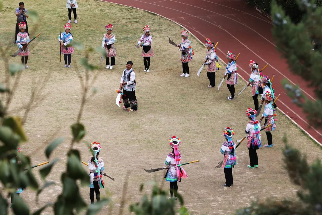 彝族大刀舞非遗传承人吉建富:“每次领舞,很多游客都会跟着我一起学打歌,还跟我拍照,有的还问我大刀舞的来历,作为非遗传承人我非常感动,我认为这个展示平台很好。”