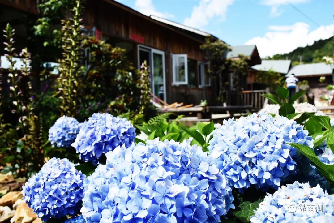 在无量药谷“云小筑”作家村,这个夏天,正是观赏的最佳季节。漫山遍野的绣球花肆意绽放,美不胜收。绣球花,原产地在地中海。不同颜色的绣球花,其花语也不相同。蓝色绣球花的花语是浪漫、美满,表达对爱情的忠贞和两情相悦的永恒。走进无量药谷,目之所及皆为蓝色绣球花。来吧,畅游花海,真情告白,让爱永恒。