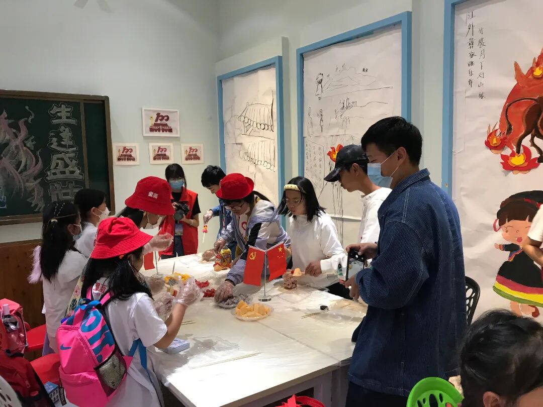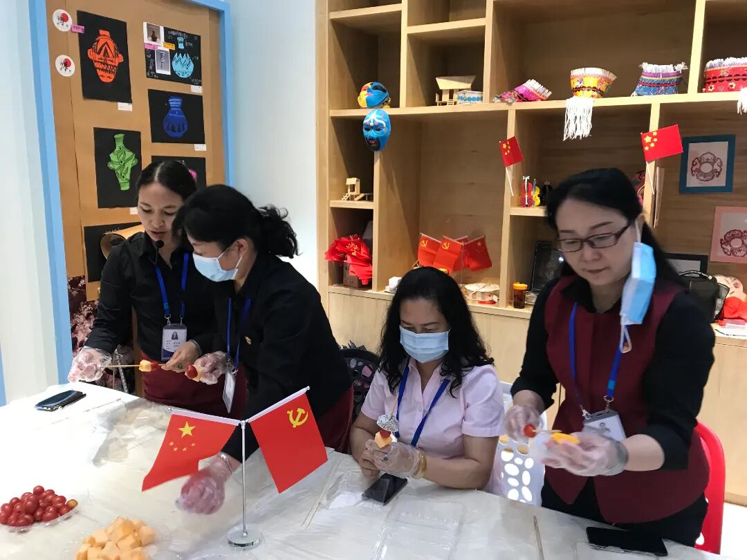 在志愿者和老师的帮助和指导下,师生们用水果和竹签等材料制作自己心目中的水果火把,大家一起动手,齐心协力,共同完成了属于自己的火把树。