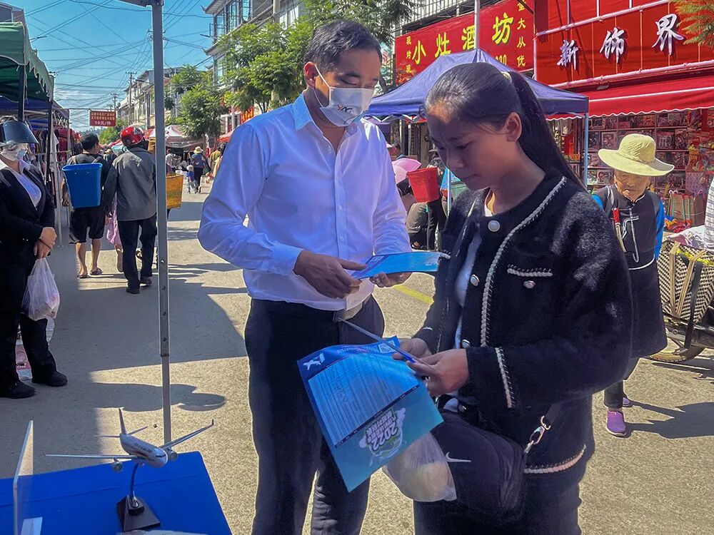 此次活动机场下沉至县乡以现场搭建各类“航旅+”营销展台开展活动,通过展示、讲解,销售、品宣等形式为本地市民细心讲解户籍票价优惠、乘机指南等政策,且深挖首乘旅客,通过强化服务意识,面对面的宣传介绍,让前来咨询的百姓进一步了解机场航线网络,感受航空旅游的优惠及带来的贴心服务。