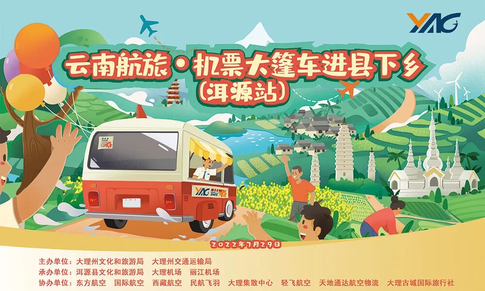 为进一步贯彻落实省委省政府加快旅游业发展恢复要求,联动省内航空与文旅资源,设计提供适合本地市场需求的优惠机票产品及服务。7月29日“云南航旅•机票大篷车(洱源站)活动”在洱源县民族文化活动广场及右所镇开展,此次活动得到洱源县文化和旅游局的大力支持,大理机场联合丽江机场、东方航空、国际航空、西藏航空、民航飞羽、大理集散中心、轻飞航空、天地通达航空物流隆重开展活动。