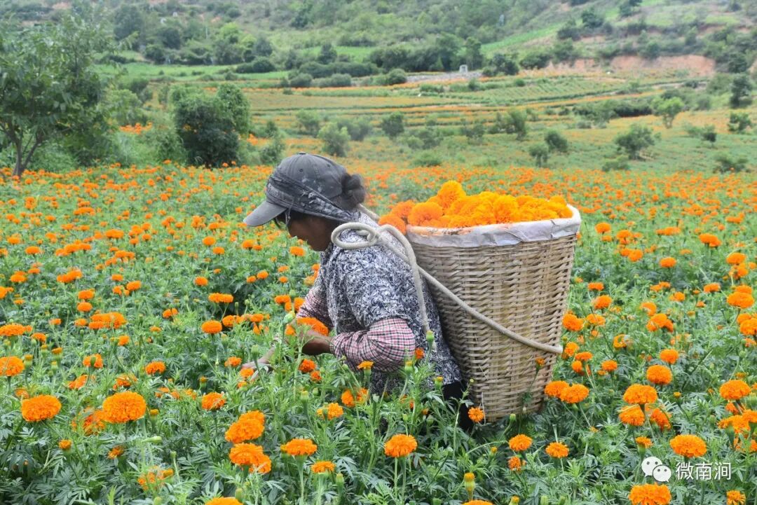 时下,南涧县乐秋乡米家禄村委会的300亩万寿菊迎来收获时节。金灿灿的花儿绽放在连片的山坡之上,美不胜收,成为乡村田野间一道靓丽的风景线。怒放的万寿菊不仅扮靓了山村,还为村民增收致富带来了新希望,更为乡村振兴注入了活力。