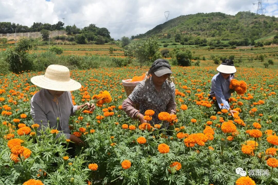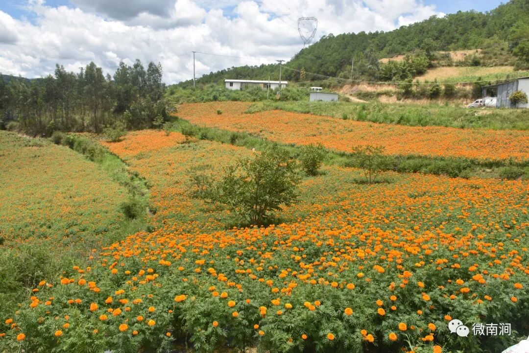 “经过科学管理,万寿菊长势喜人,目前,已经进入盛花期,万寿菊的花期长,一直要开到11月份。欢迎大家每周六约上三五好友,到米家禄村赶红兴集市、逛供销社、体验扎染、品羊汤锅、观万寿菊。”大理州中级人民法院驻米家禄村第一书记、乡村振兴驻村工作队队长何群站在万寿菊花海里推介道。