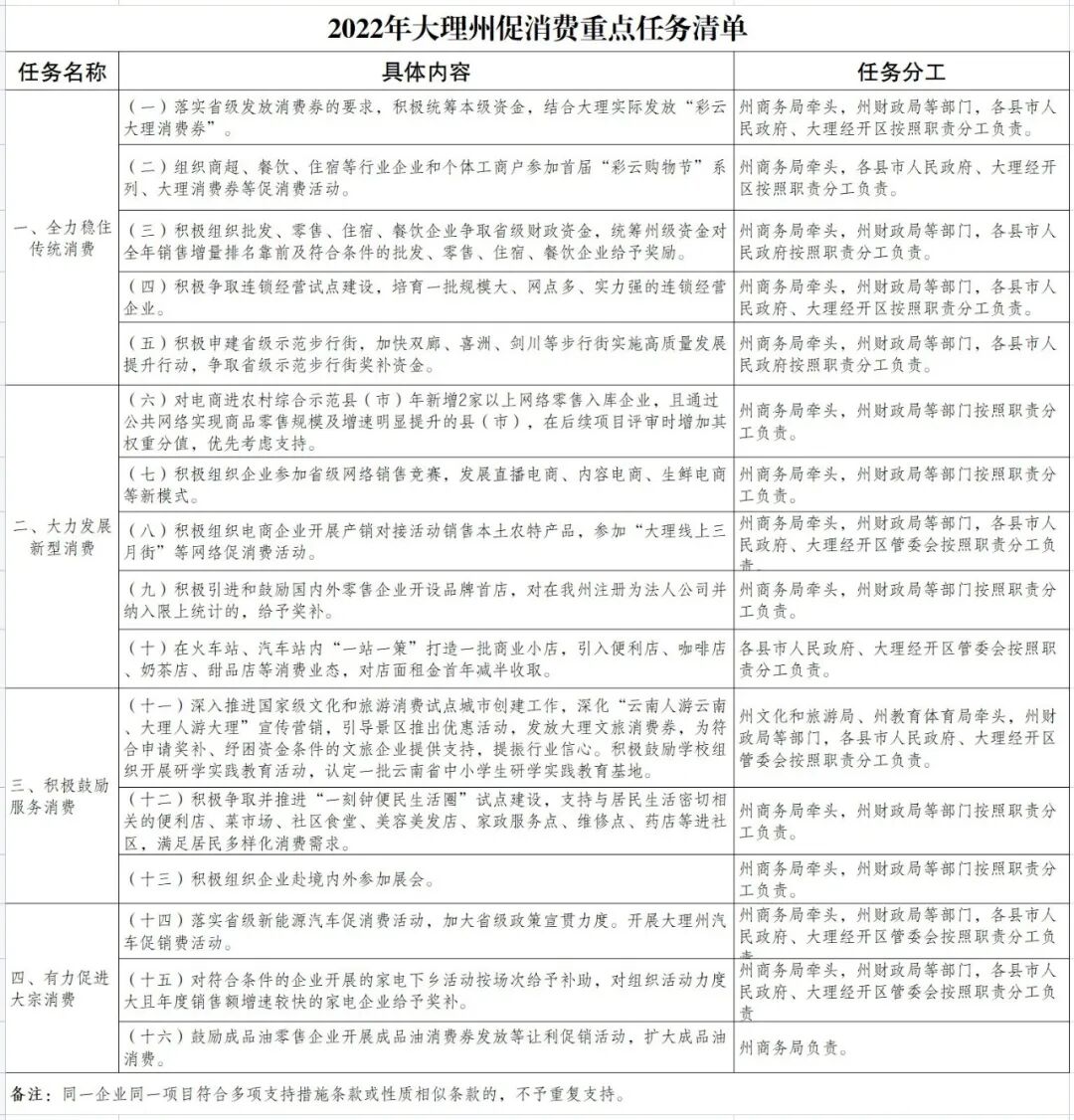 大理州促进消费恢复发展若干政策措施