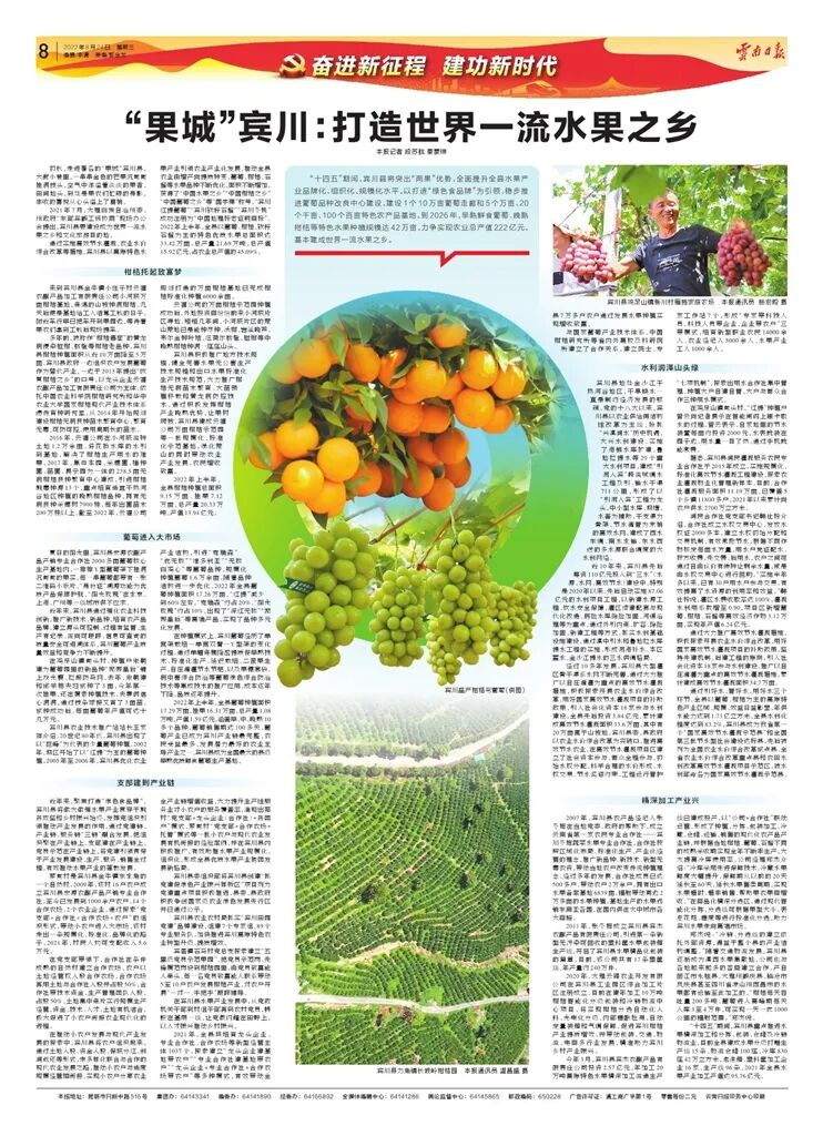 “十四五”期间,宾川县将突出“两果”优势,全面提升全县水果产业品牌化、组织化、规模化水平。以打造“绿色食品牌”为引领,稳步推进葡萄品种改良中心建设,建设1个10万亩葡萄走廊和5个万亩、20个千亩、100个百亩特色农产品基地。到2026年,早熟鲜食葡萄、晚熟柑桔等特色水果种植规模达42万亩,力争实现农业总产值222亿元,基本建成世界一流水果之乡。