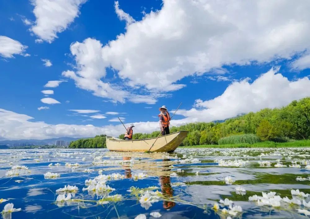 “一朵花”即海菜花。海菜花对水质要求非常高,被称为“水质风向标”。今年以来,海菜花在洱海连片绽放。在国内外专家看来,这是洱海水质向好的有力证明,更是绿色大理的特有魅力。
