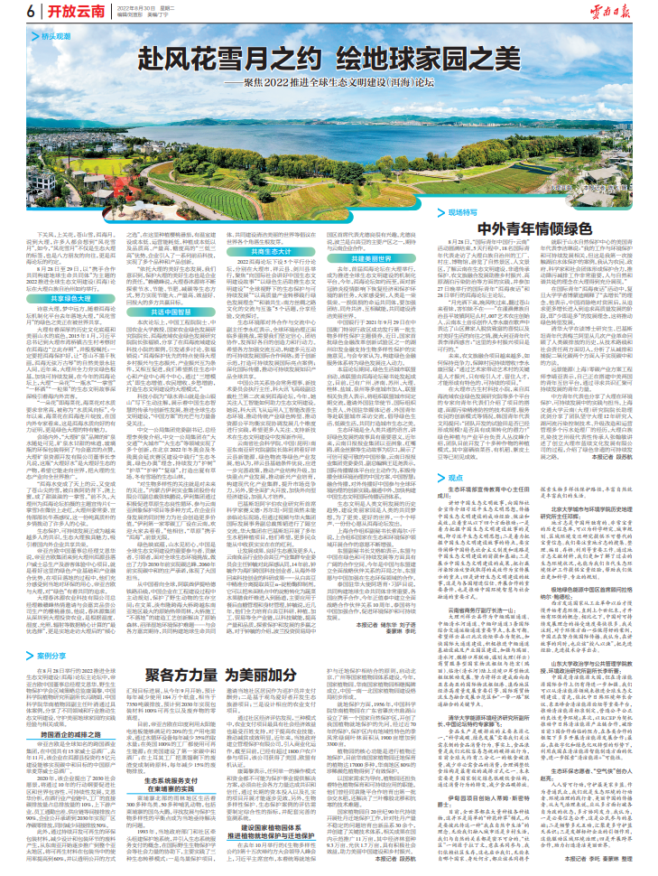 8月28日至29日,以“携手合作 共同构建地球生命共同体”为主题的2022推进全球生态文明建设(洱海)论坛在大理白族自治州如约举行。